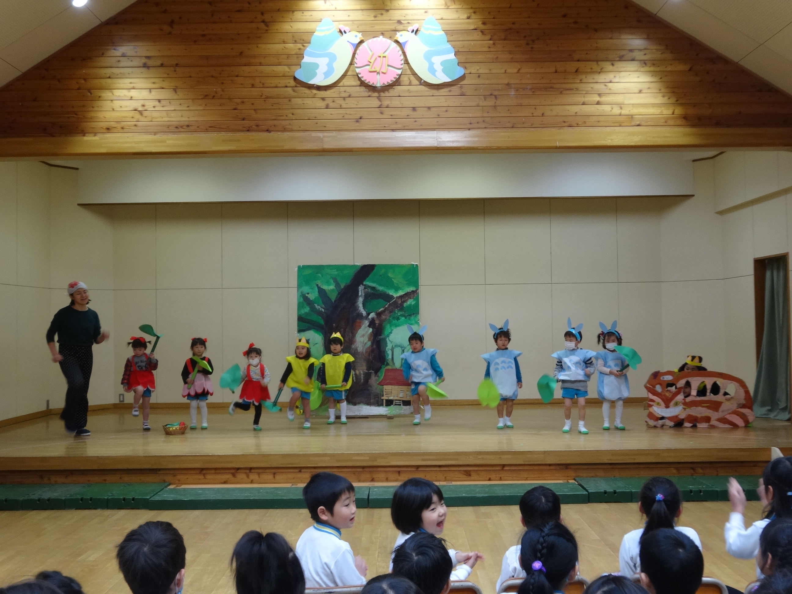 4歳児 友達と気持ちを合わせて自分の役を一生懸命演じました。