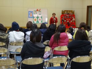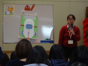 五台小学校養護教諭の久松先生より5歳児と保護者を対象に小学校入学前に知っておきたい「うんちの話」と「トイレの使い方」についてお話をいただきました。