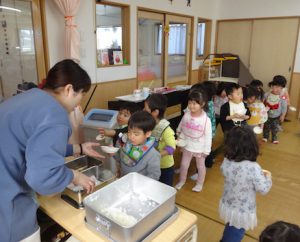 小学校のようにお当番さんが配ります。