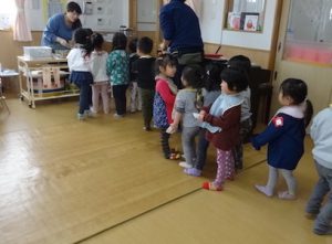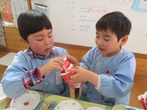 「牛乳大好き!おいしいね!」とほとんどのお子さんが残さずに飲んでいました。