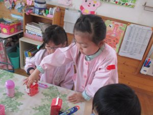 就学に向けて,5歳児クラスに牛乳200mlが出ました。