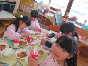 <5歳児クラスの給食の様子>