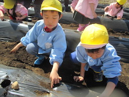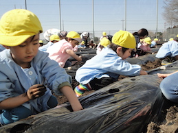 土のお布団の中に植えていきます。