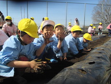 待ちに待ったジャガイモの種芋植えの日。とても良いお天気でした。