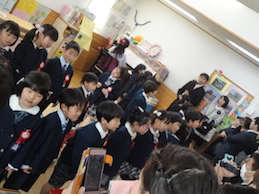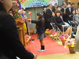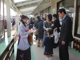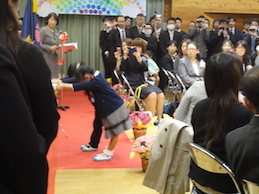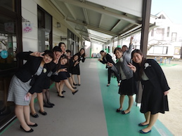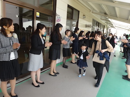 テラスでは,先生たちが花道を作って待っていてくれました。