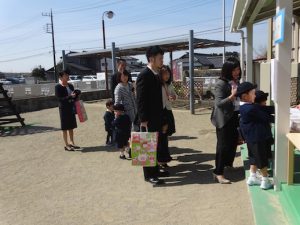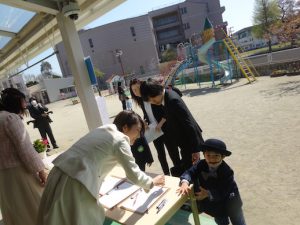 新しい制服に身をつつみ、お父さんやお母さんと手を繋いで幼稚園の門を入ってきたお友達。