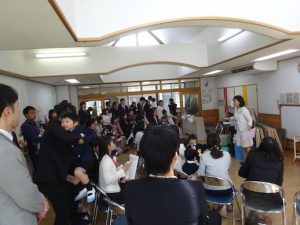 お兄さん・お姉さんと一緒に「ちゅうりっぷ」の歌をうたったり,歓迎のお話を興味深げによく聞いていました。