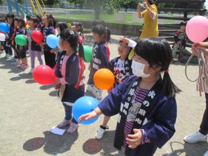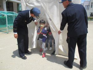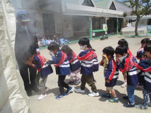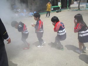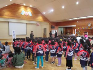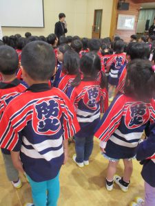 ふじ組さくら組のお友達は防火の法被を来て発会式に参加しました。