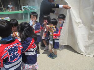 ハンカチで口元を押さえてドキドキしながら体験する子ども達でした。