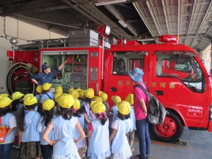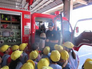 消防士の方が消防車の説明をしてくれました。