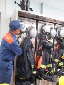 消防士の皆さんが仮眠スルところやなるべく早く支度をするための工夫なども聞きました。