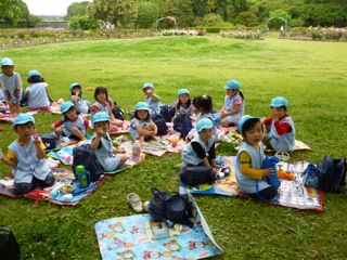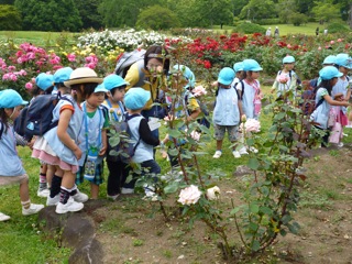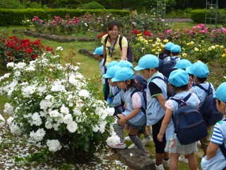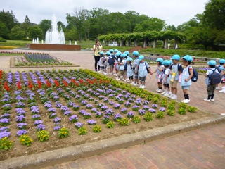 6月11日(火) 年中組の子ども達を茨城県植物園へ連れて行きました。初夏の自然の雰囲気を感じながら、いろいろな事に感性を動かし、楽しい時間をすごしました。噴水が立ち上がり、花壇には赤や黄色、紫といった色鮮やかな草花、緑色したまわりの樹木のコントラストが大変奇麗でした。バラ園では素敵なお姫様の名前も(プリンセスダイアナ   プリンセスミチコ)。芝生の広場には、コロコロとしたものがあちこちにありました…ウサギのうんちの発見です! 子ども達は驚き一杯です。