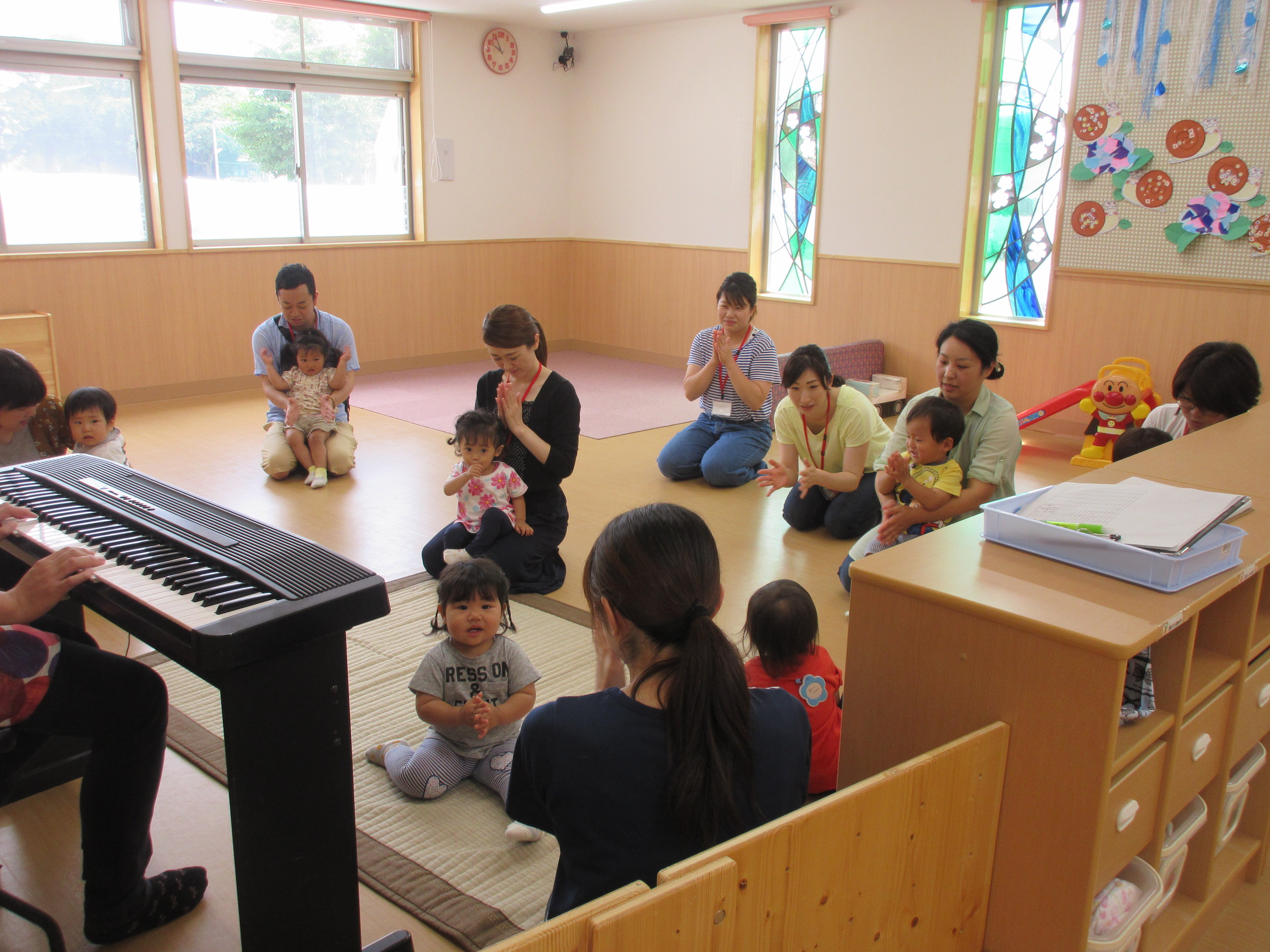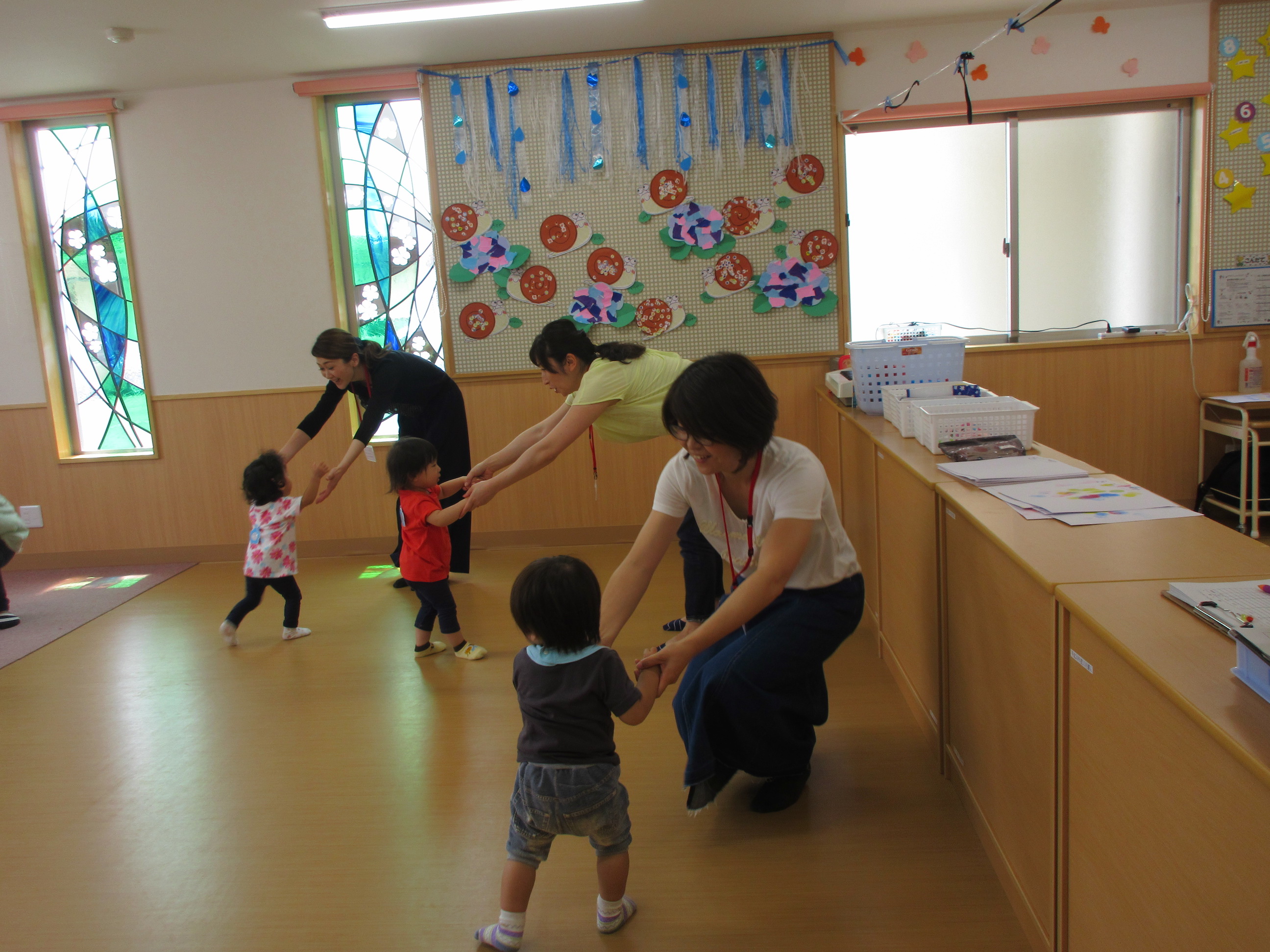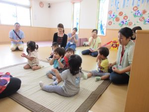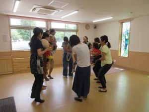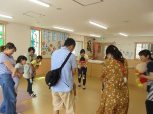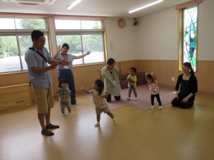 『おおきな たいこ』に合わせて大きく広がったり小さく集まったり…
