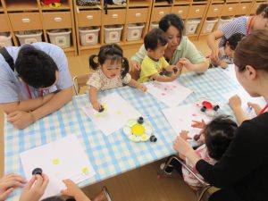 そしてスタンプをした画用紙を切り取り、とても素敵な七夕飾りが完成!