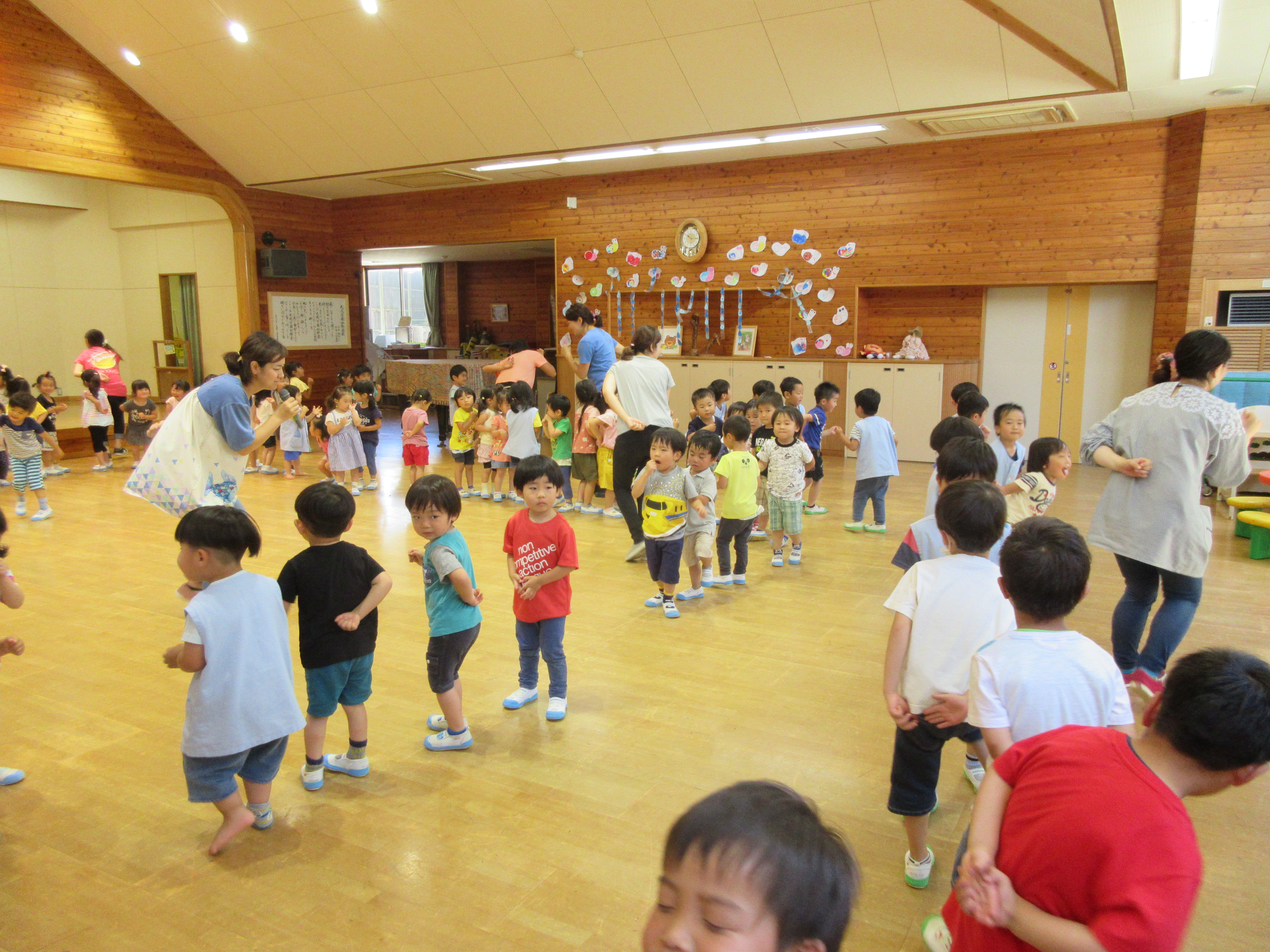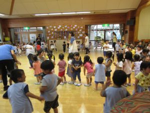 7月21日(土)の夕涼み会に向けて,少しずつ盆踊りの練習を始めている子どもたち。