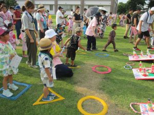 ボーリング・的あて・お面屋さん‥全部で9つのコーナーがあり,こどもたちはどれも夢中に