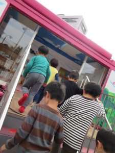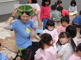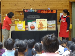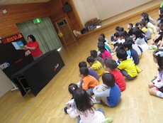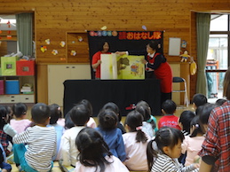 遊戯室では,おはなし隊の方が大型絵本の読み聞かせをしてくれました。