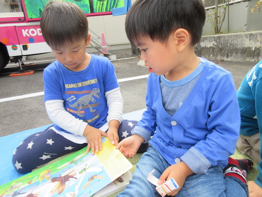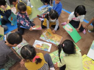 面白い絵本があると,友達や先生にも嬉しそうに知らせる姿がたくさんありました。