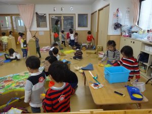 一段と賑やかになり,ままごとやプリキュアごっこ,パトレンジャーごっこ,電車ごっこなど毎日様々な遊びを楽しんでいます。