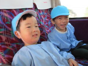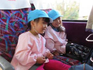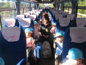 お友達と一緒に大型バスに乗り,歌を歌ったり、クイズをしたりしながら過ごしました。