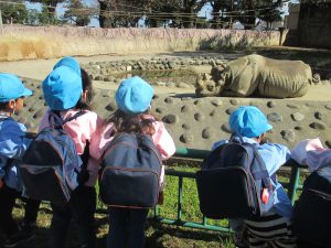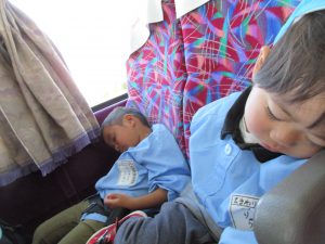 沢山の動物を見て満足気な子どもたち。帰りのバスは気持ちよさそうに寝ているお友達もいましたよ。