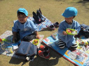 お家の方が作ってくれたお弁当。みんな喜んで食べていました。