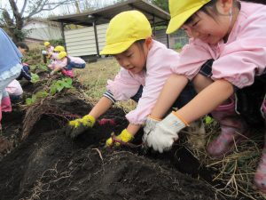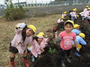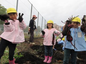 11月6日(火)に茨城女子短期大学生の学生と一緒にサツマイモ掘りをしました。