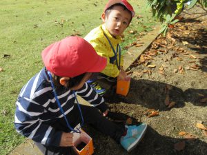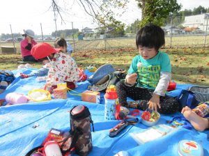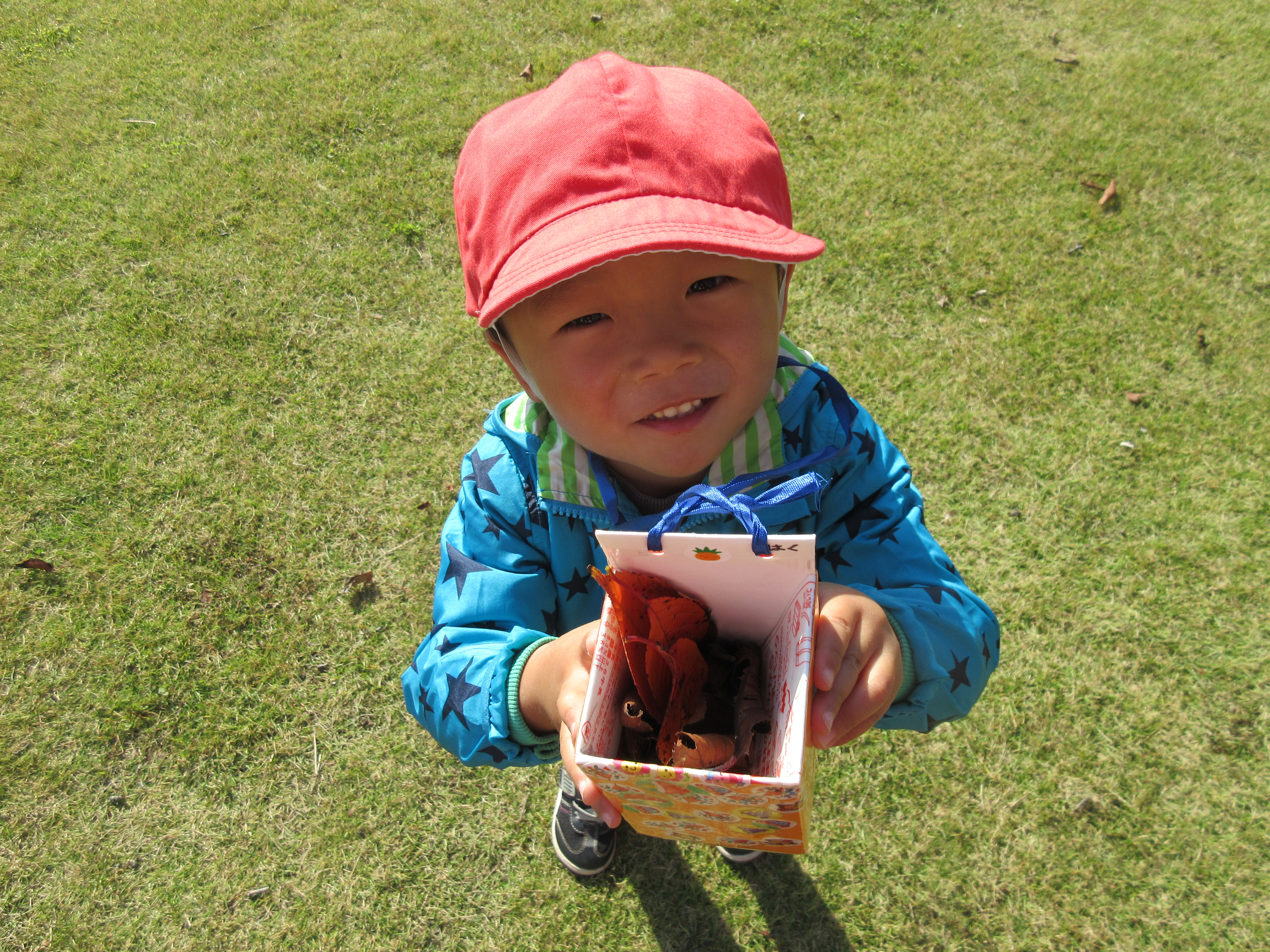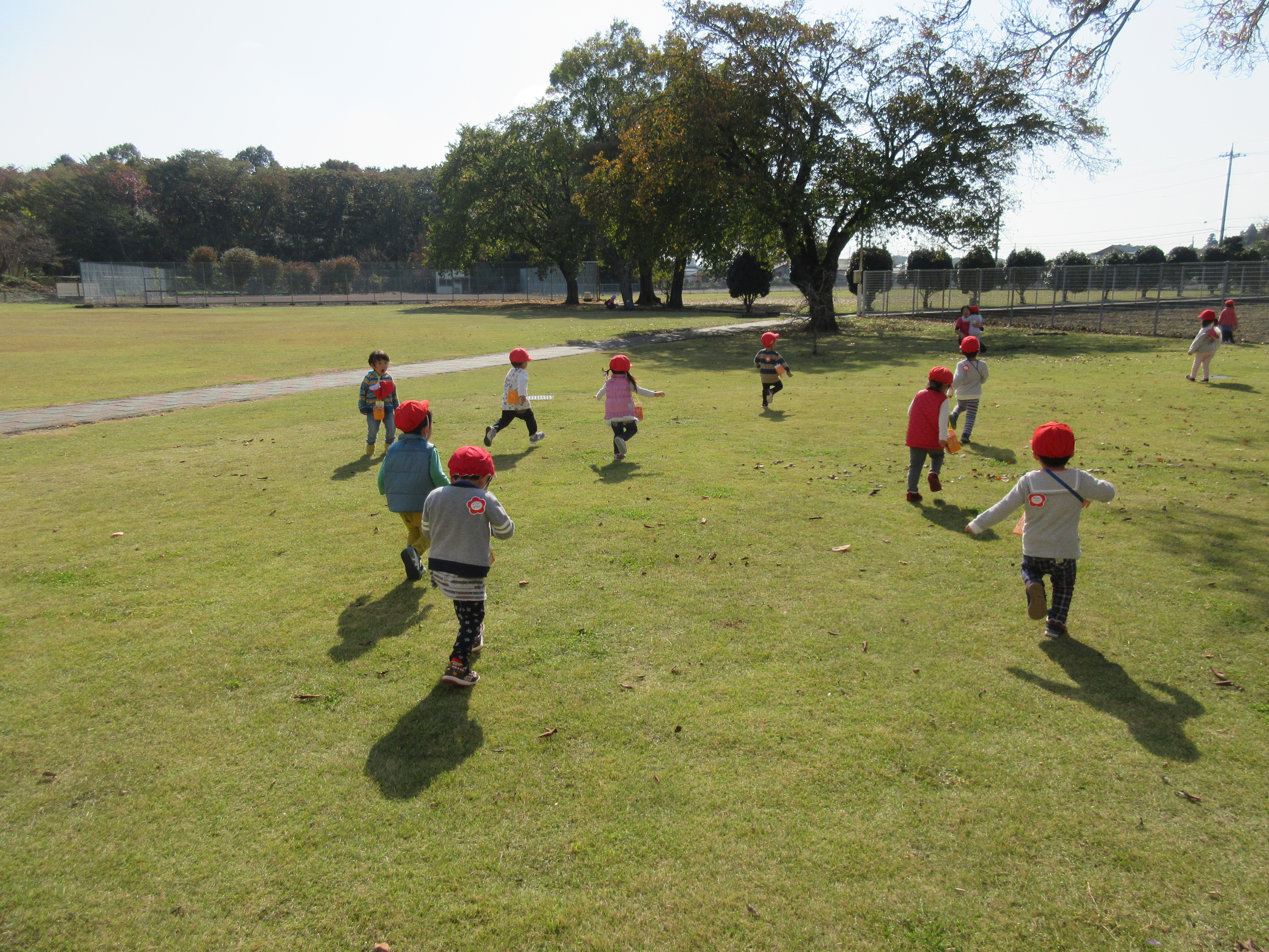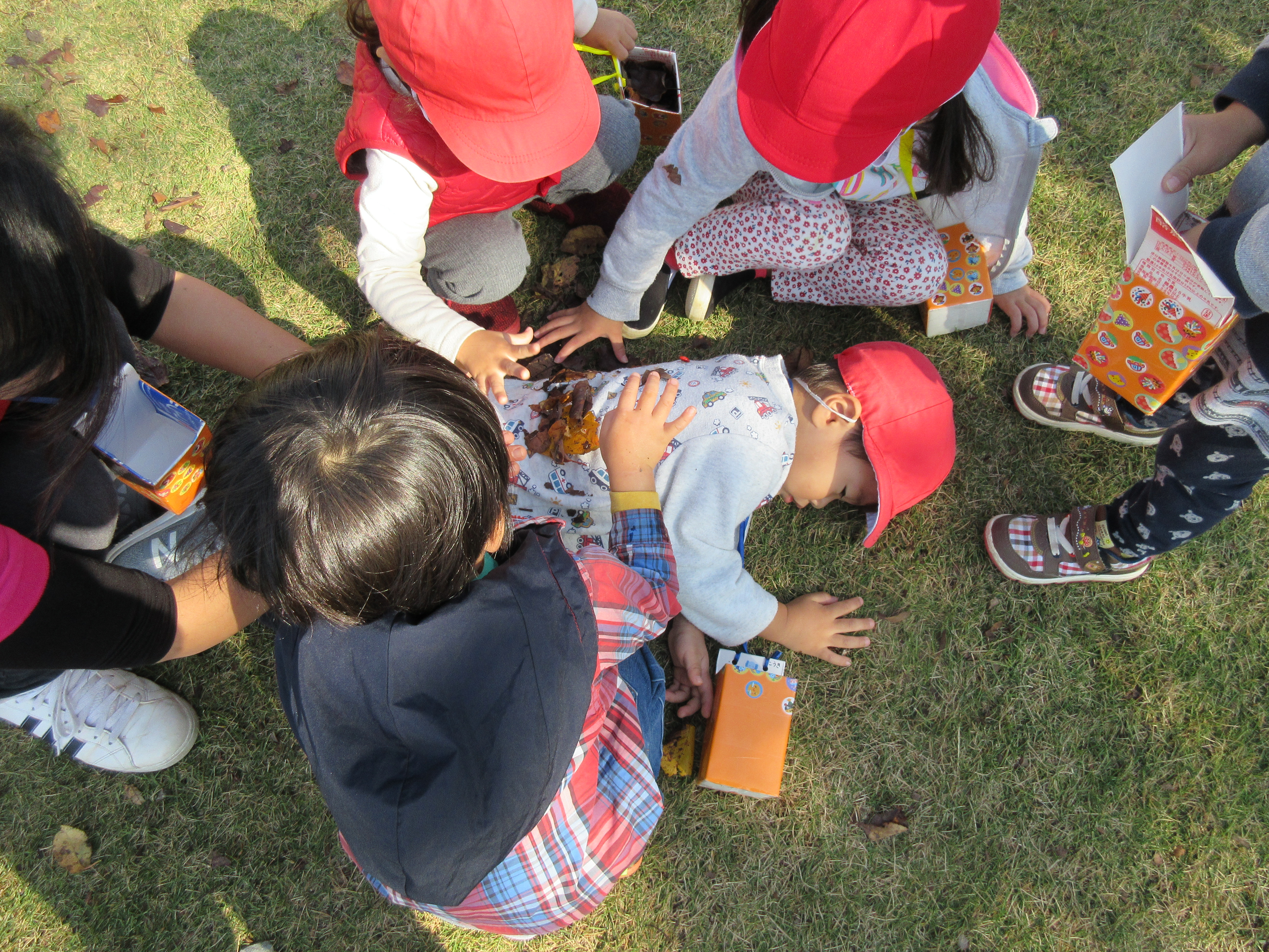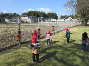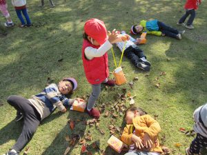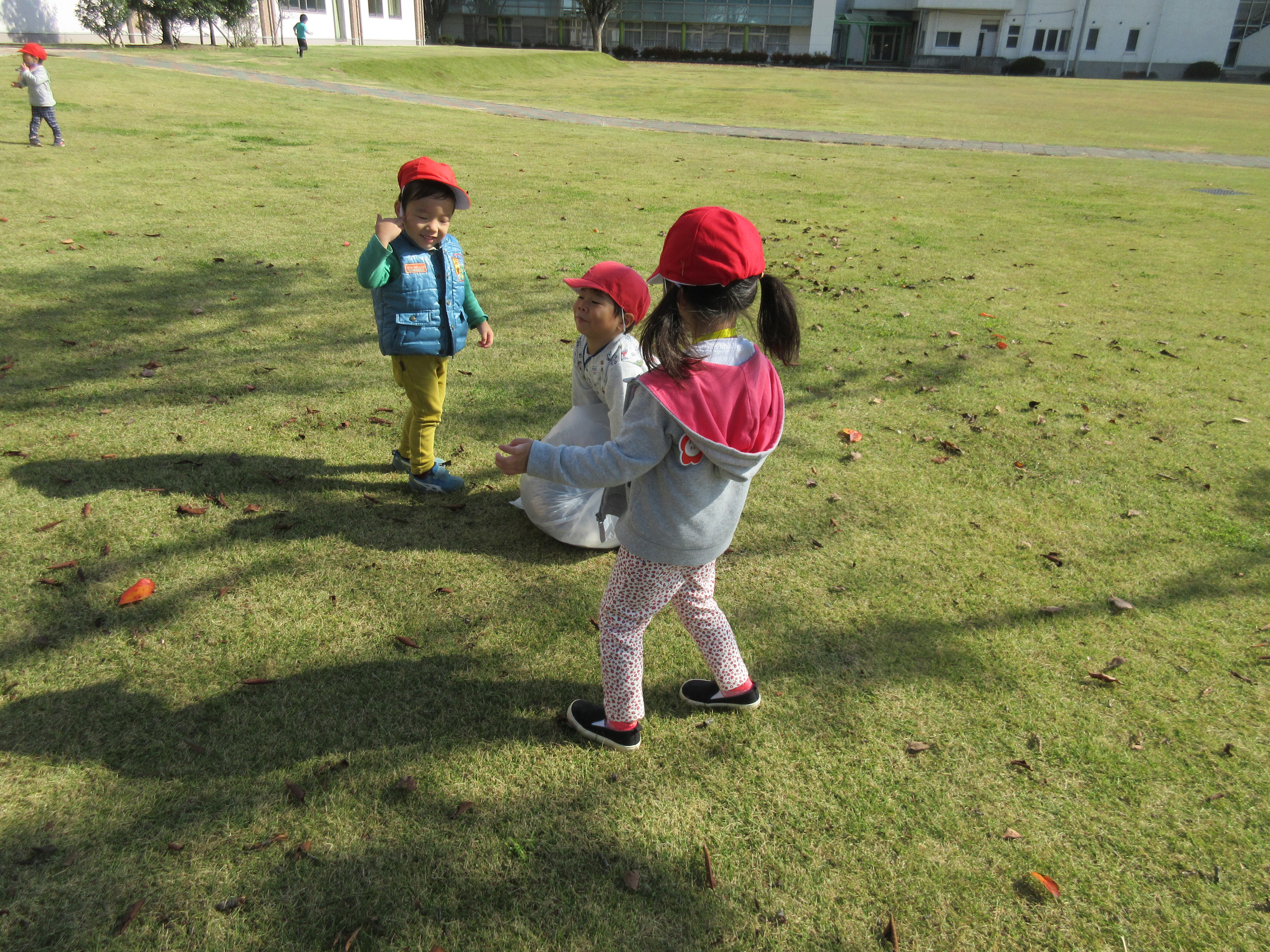 落ち葉のぼーるを投げたり蹴ったりして遊びました。