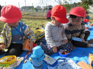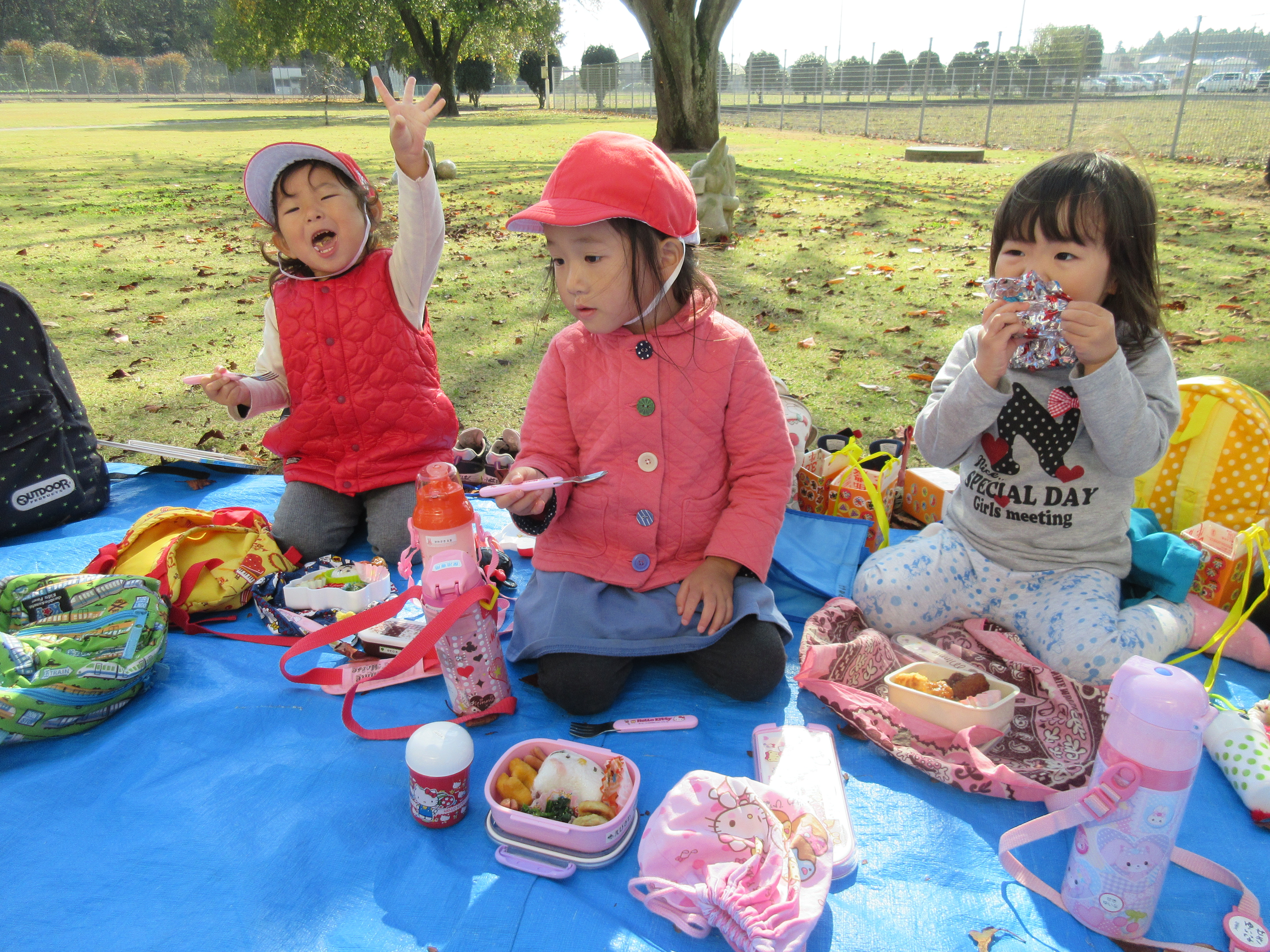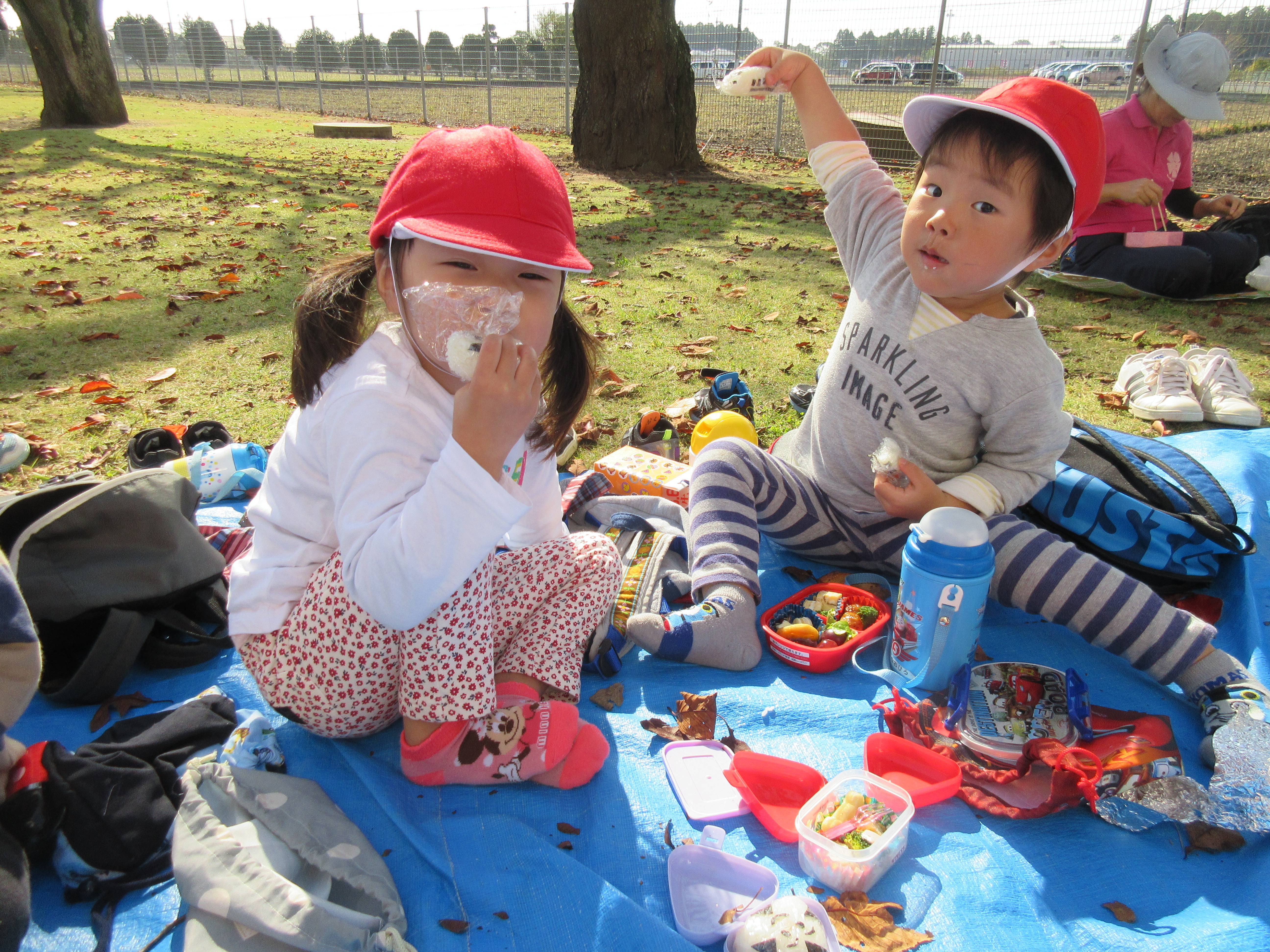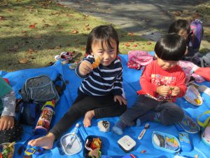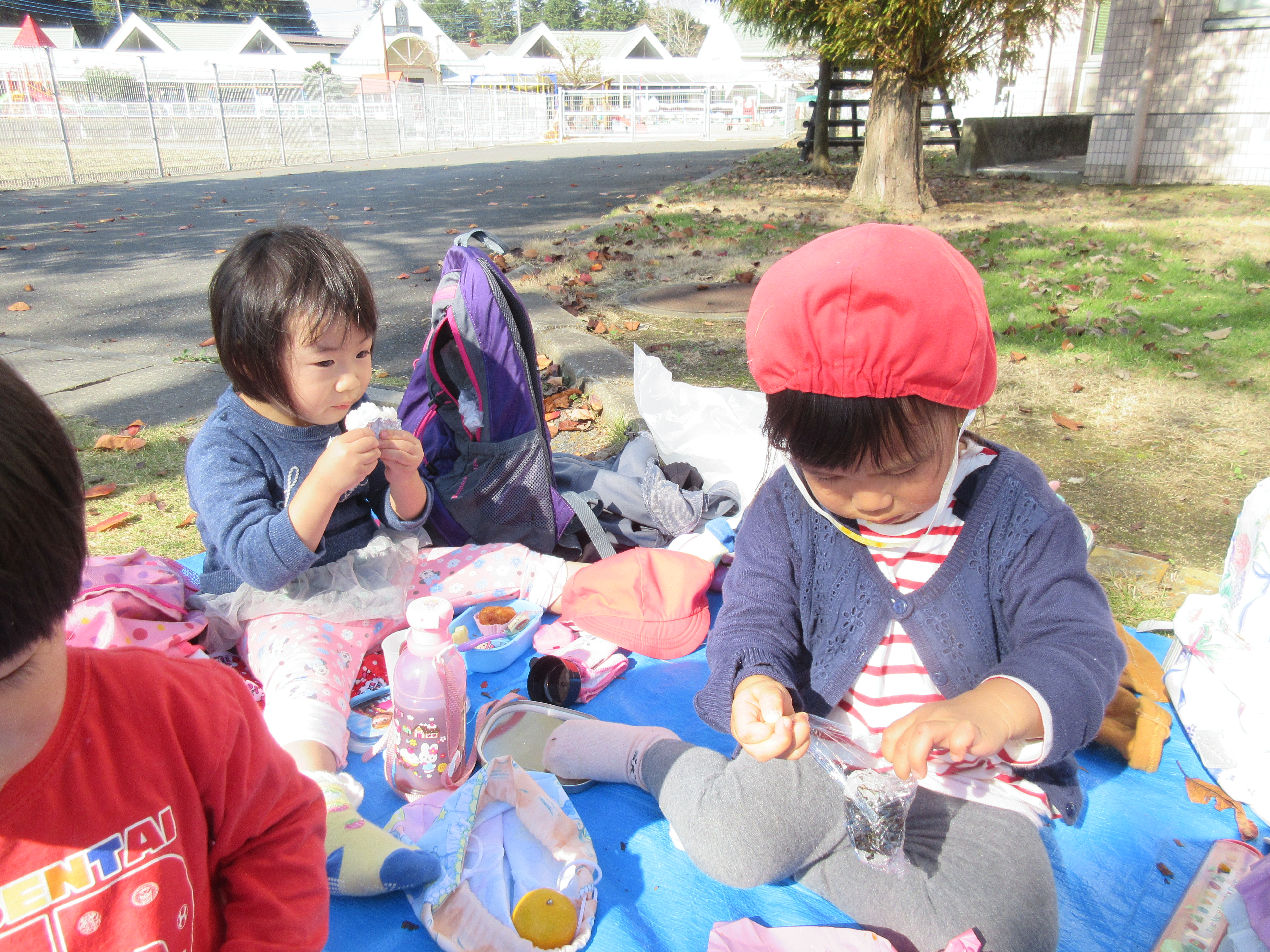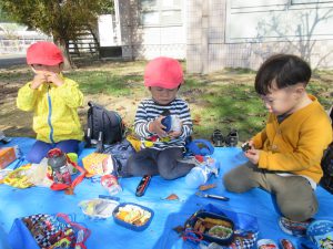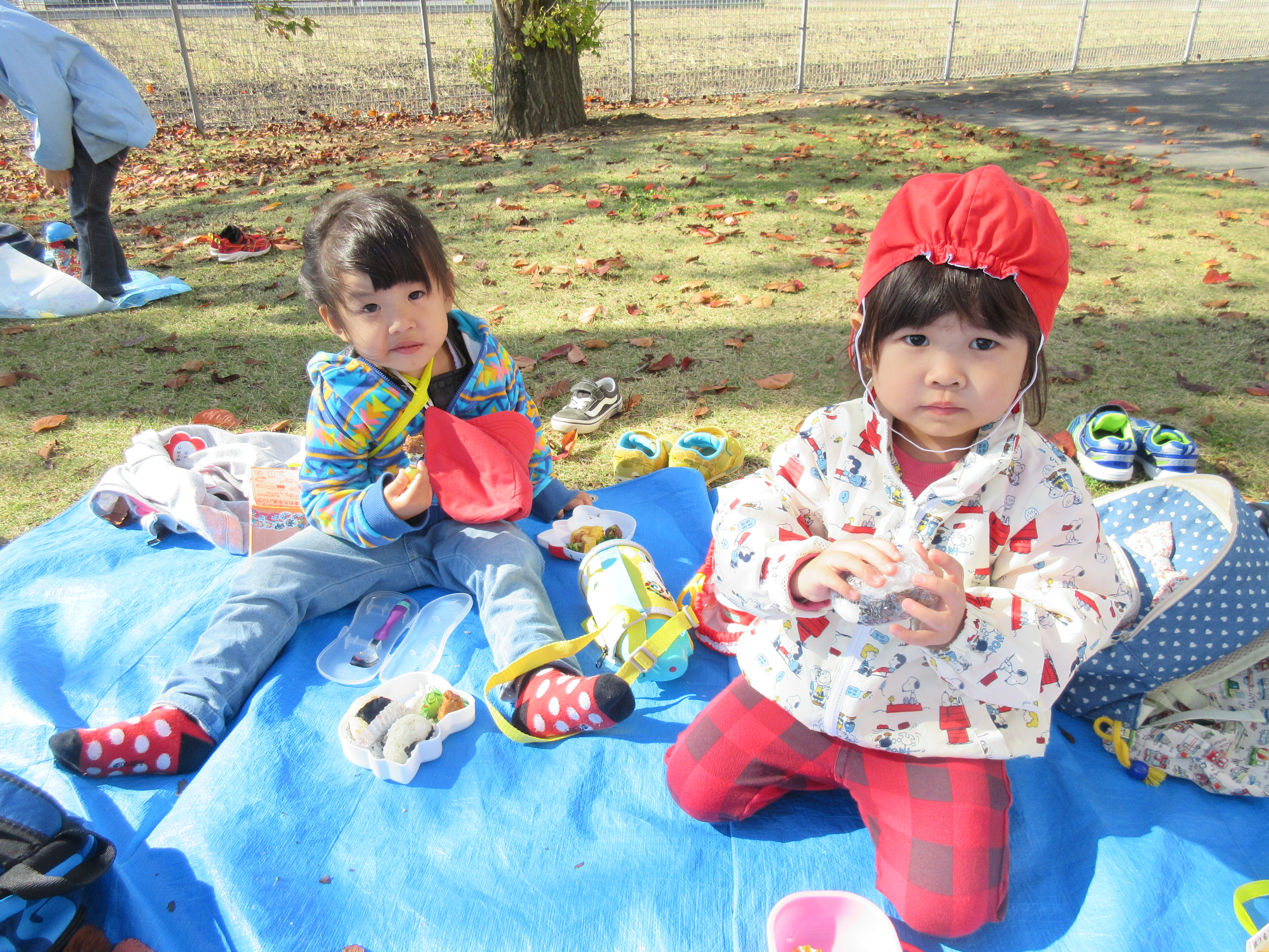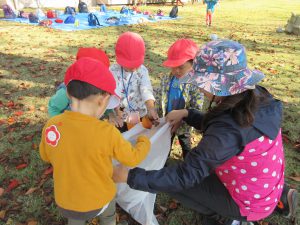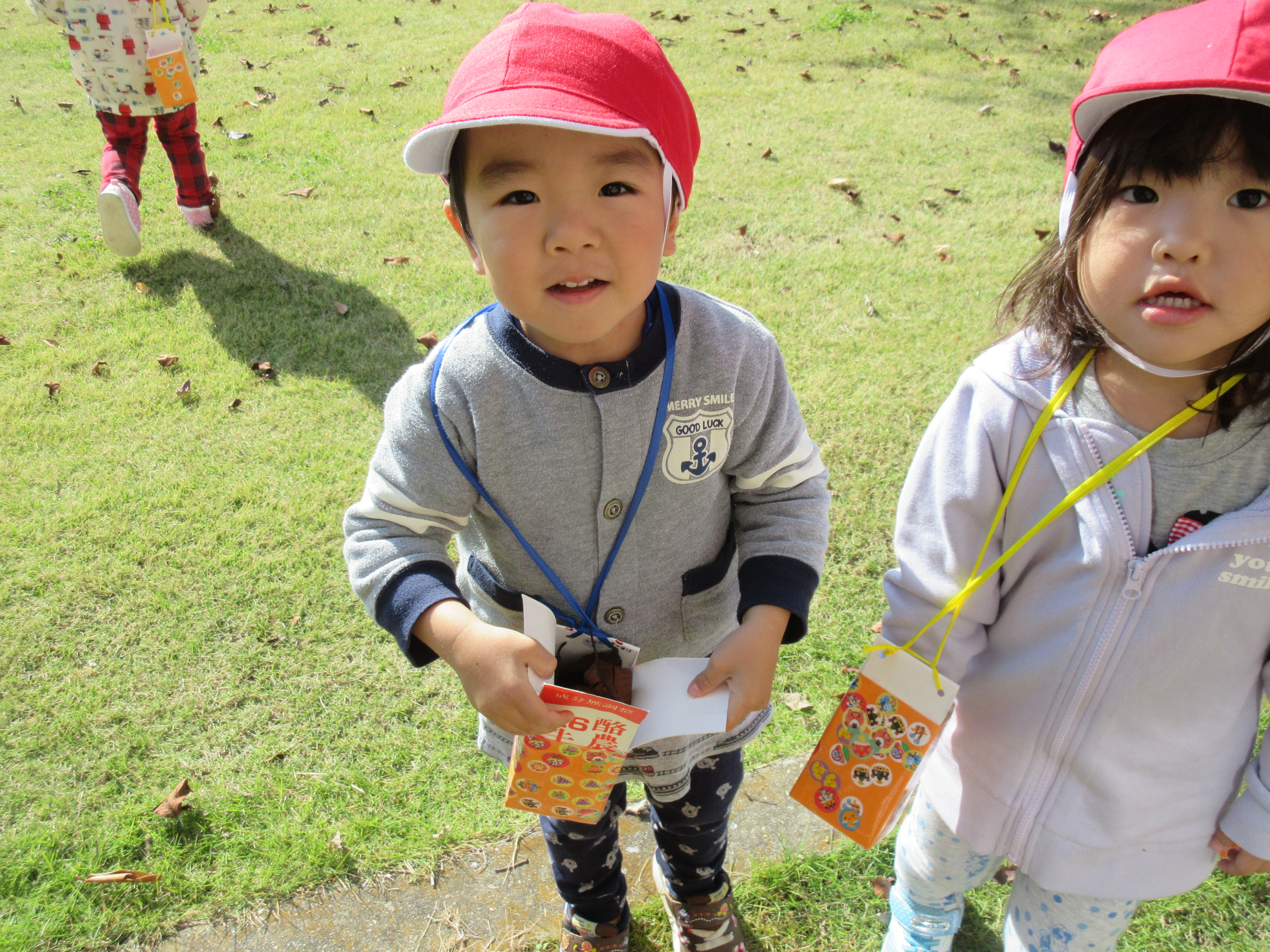 落ち葉のぼーるを投げたり蹴ったりして遊びました。