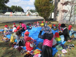 短大では,落ち葉を拾ったりシャカシャカ落ち葉の音を