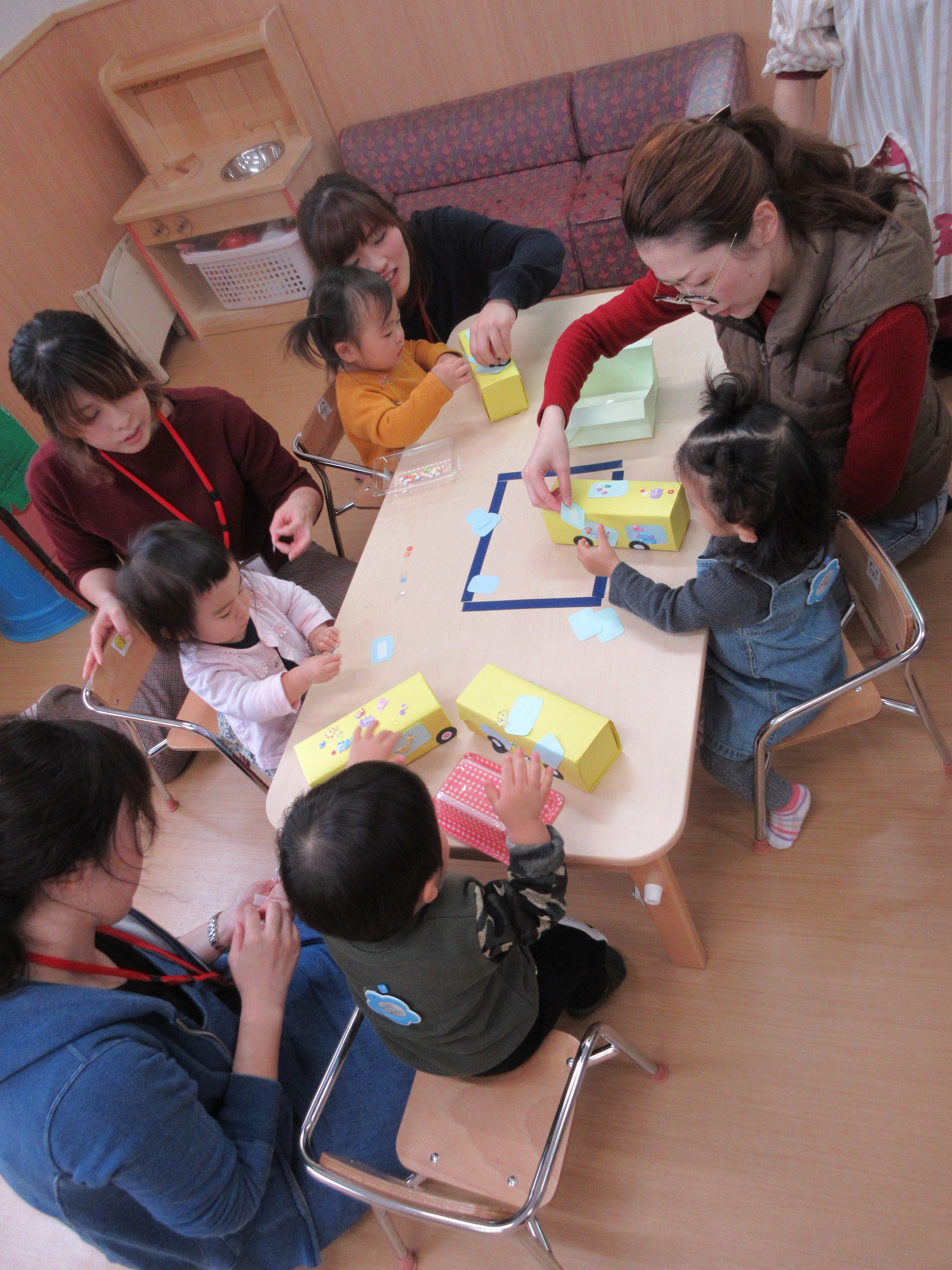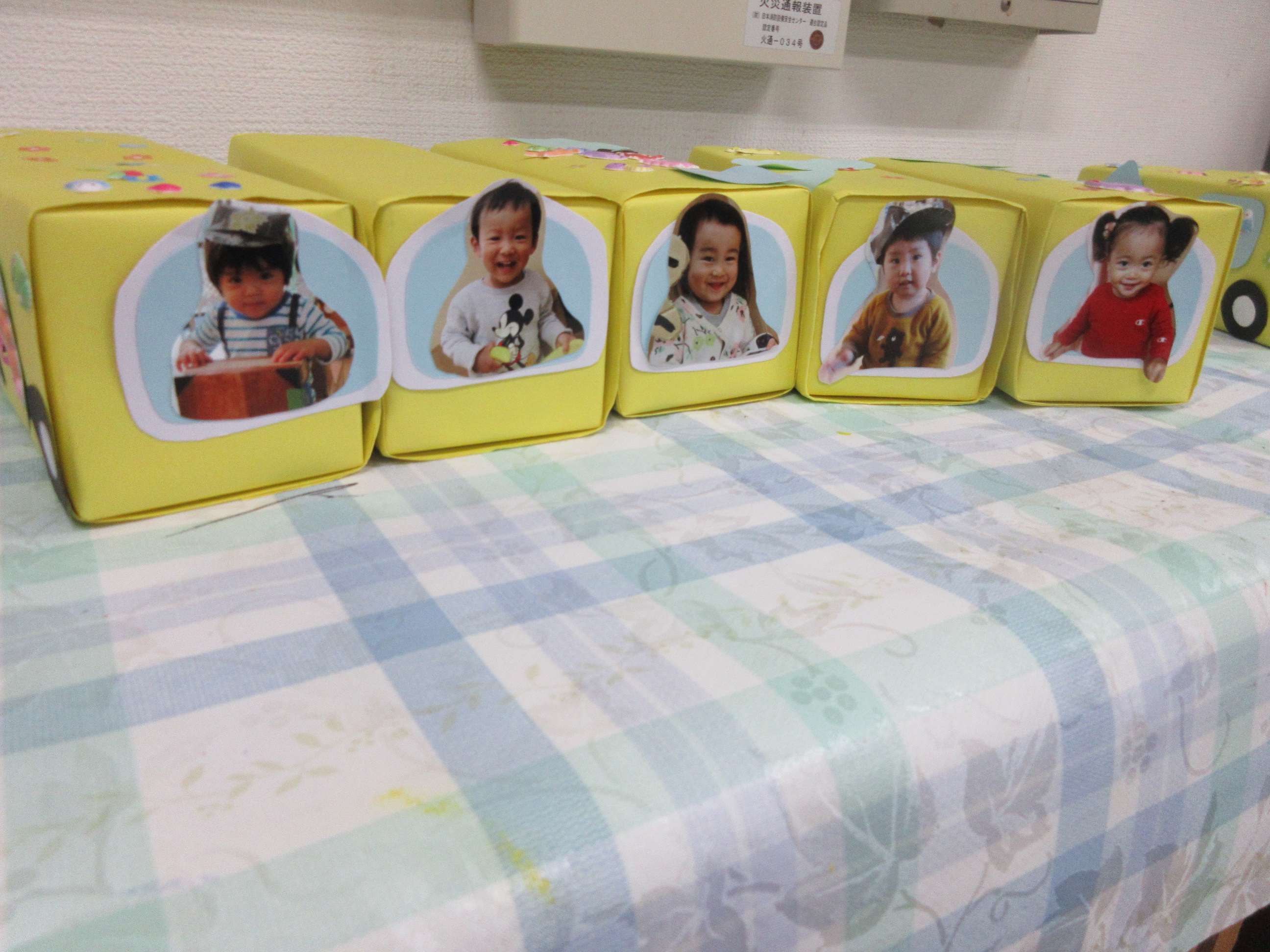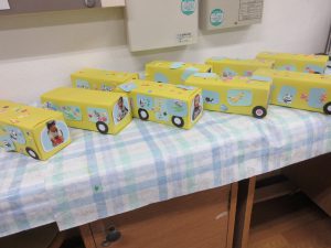 子どもたちの大好きな絵本「みんなのバス・トマリー」の中に出てくるバスを,親子で作りました。