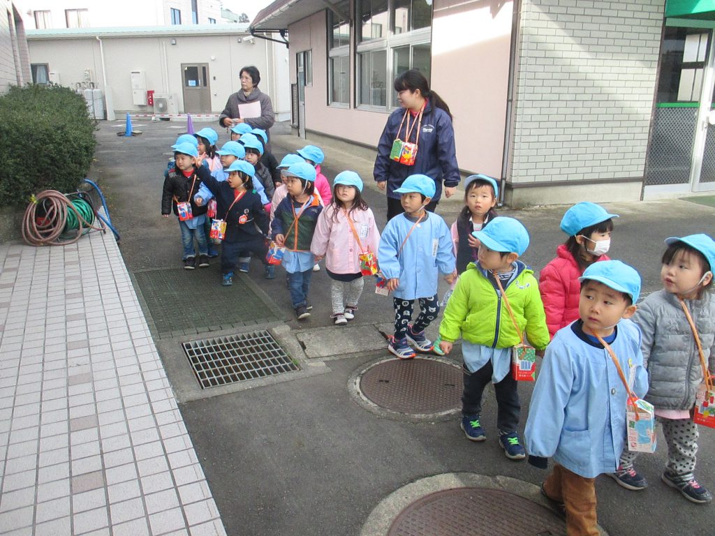 水戸農業高校へ散歩に行きました。 2018 12/10 ニュース お友達と手を繋いで仲良く出発!! 横断歩道は左右確認をして渡ることができました。 先日行った五台小学校が見えました。 高校についたら早速木の実集めが始まりました。 ここには何があるのかなぁ・・・? どんぐりが落ち葉に隠れていましたよ。 見たことのない松ぼっくりがありました。 少し寒かったですが,みんなで一緒に散歩に出かけて楽しかったですね! ニュース URLをコピーしました! 欠席状況(感染症)12月10日(月) 今日の給食 12月11日(火) コメント コメントする コメントをキャンセルコメント ※ 名前 ※ メール ※ サイト 次回のコメントで使用するためブラウザーに自分の名前、メールアドレス、サイトを保存する。 上に表示された文字を入力してください。 Δ