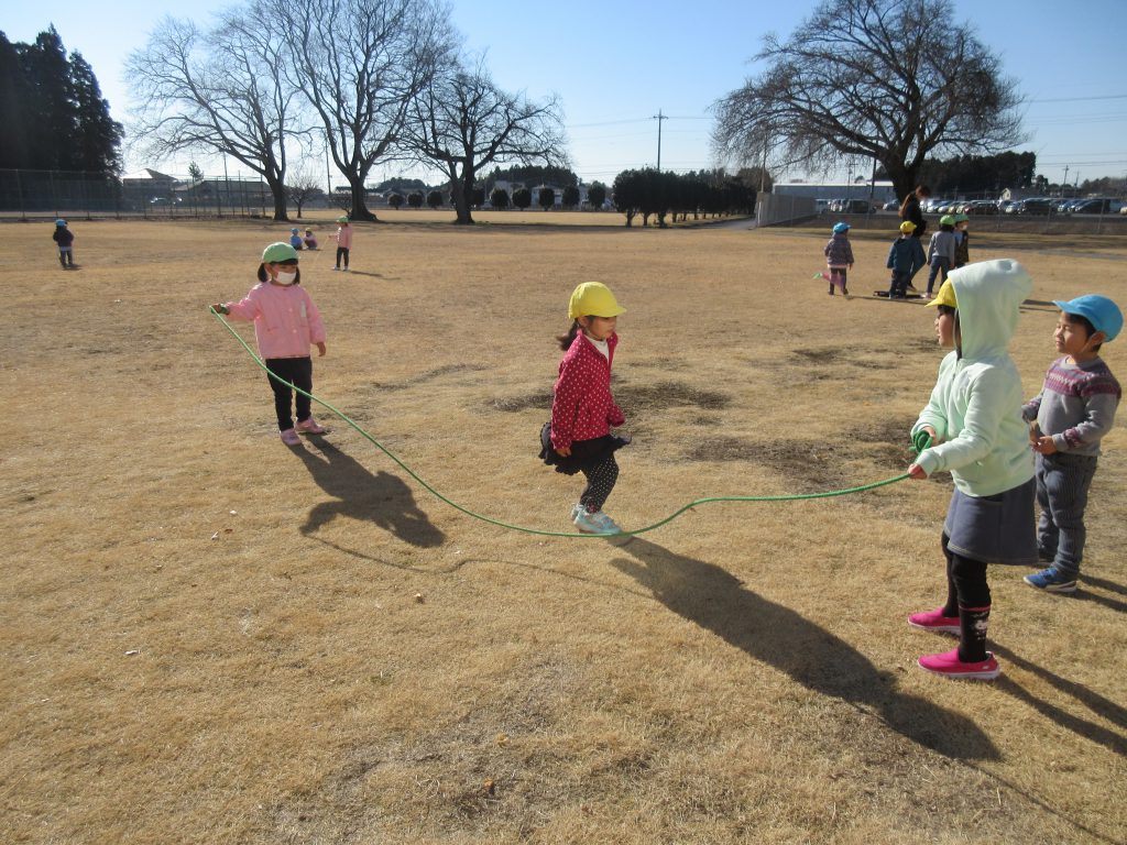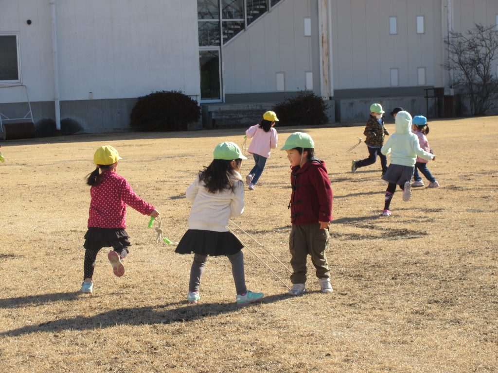しっぽ取りやサッカー、大縄跳びなど広い芝生でのびのびと遊びました。