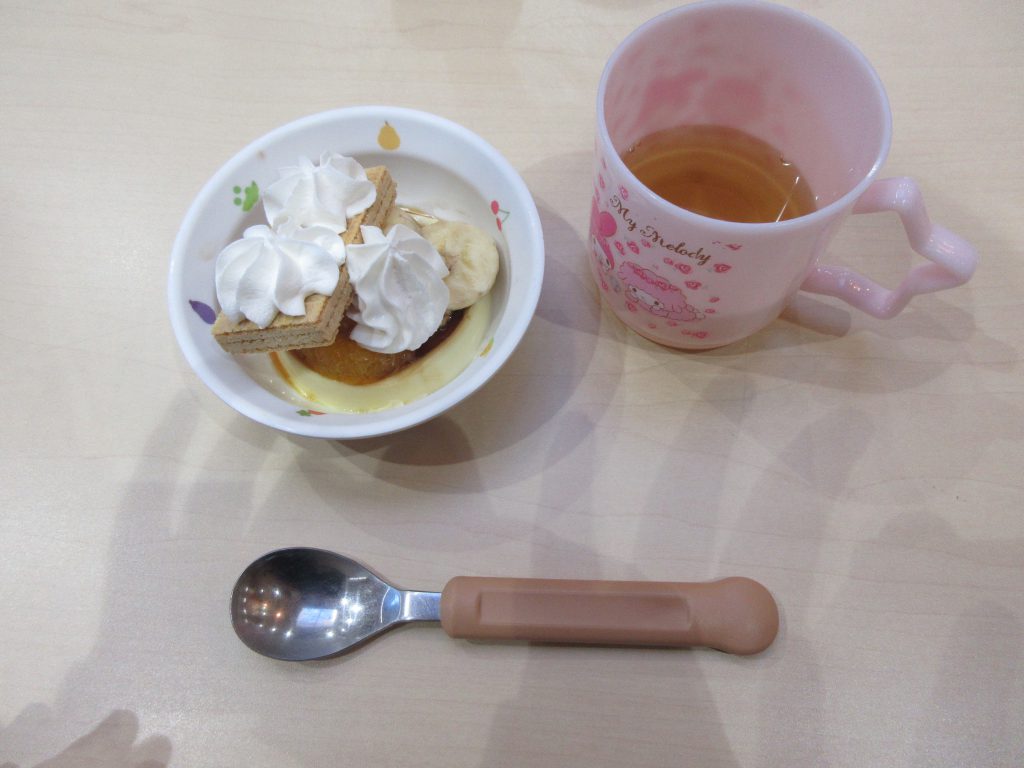 今日のおやつはプリンアラモード!!