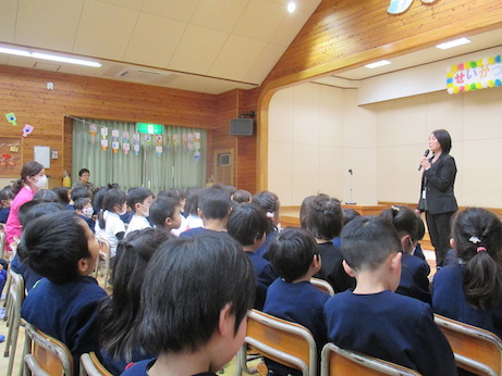 礼法が終わった後は,にじ組の5歳児と額田保育園の友達でおやつを食べて過ごしました。