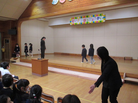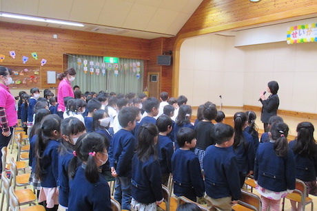 1月28日(月)に大成高校の先生をお招きして、礼法指導をしていただきました。額田保育園の年長さんも一緒でした。