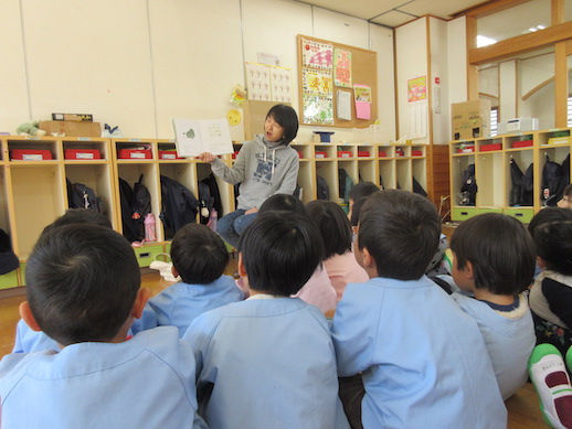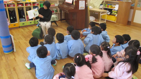 お話の会「ルピナス」の方が来て、絵本の読み聞かせをしてくれました。