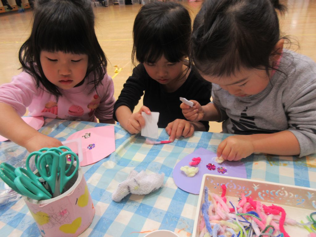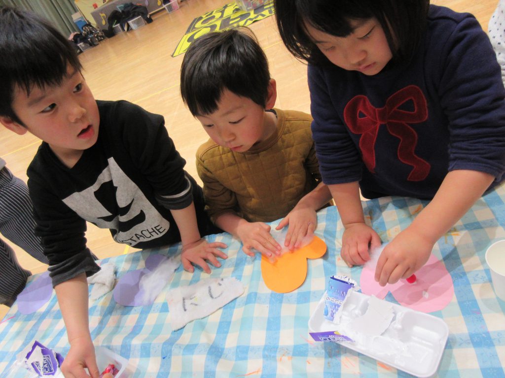 2月 にじ組み活動 2019 2/26 ニュース 2月からにじ組みでは、ドッチボールが大人気です!!!外遊びになると「ドッチボールやろう!」と元気いっぱいな声が聞こえてきます。 先生が出したミッションをクリアしていく、ミッションゲームに挑戦!!! 2月の壁面製作は、手袋です。「可愛く飾りつけ出来たよ!」「手袋暖かそうだな〜」などお話ししながら楽しく作っていました 「たんぽぽ・もも・ふじ」「ひまわり・うめ・さくら」に分かれて玉入れゲームをしました。 ニュース URLをコピーしました! 欠席状況(感染症)2月25日(月) 欠席状況(感染症)2月26日(火) コメント コメントする コメントをキャンセルコメント ※ 名前 ※ メール ※ サイト 次回のコメントで使用するためブラウザーに自分の名前、メールアドレス、サイトを保存する。 上に表示された文字を入力してください。 Δ
