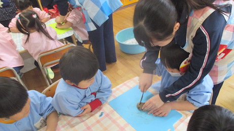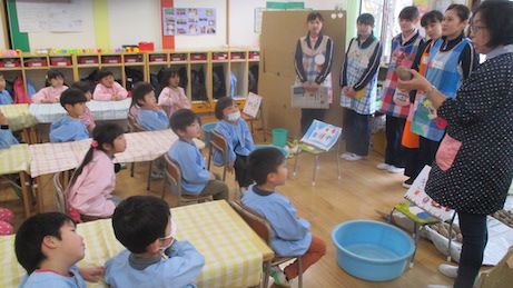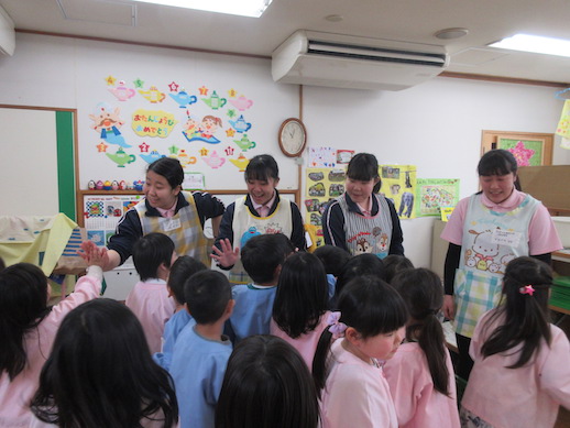 短大の海野先生や短大生が来てくださり一緒に活動を行いました。