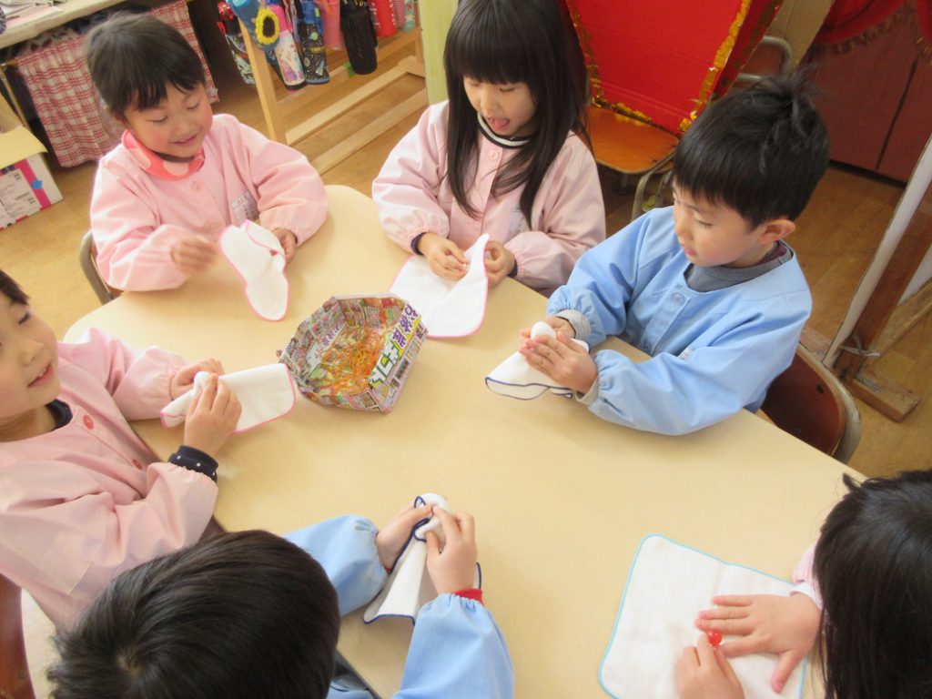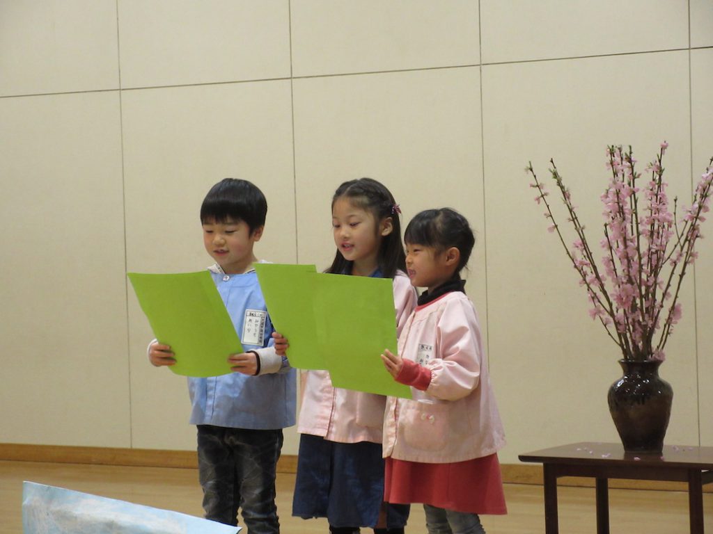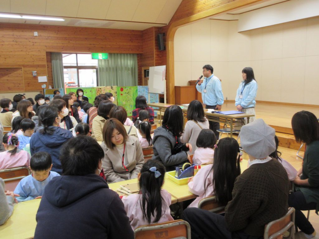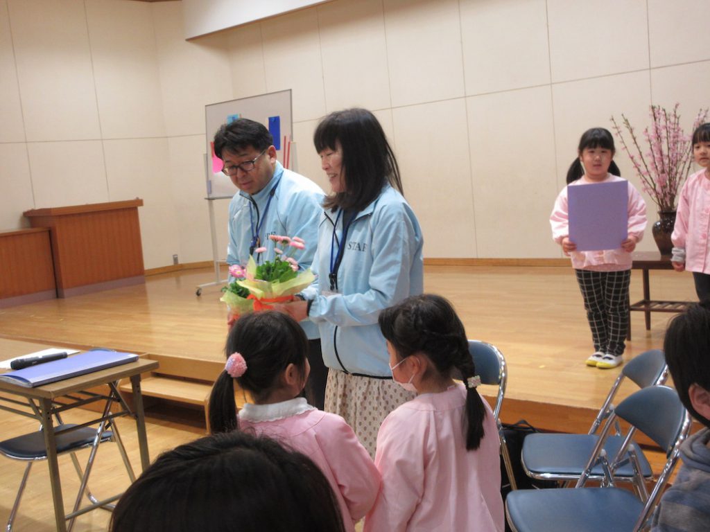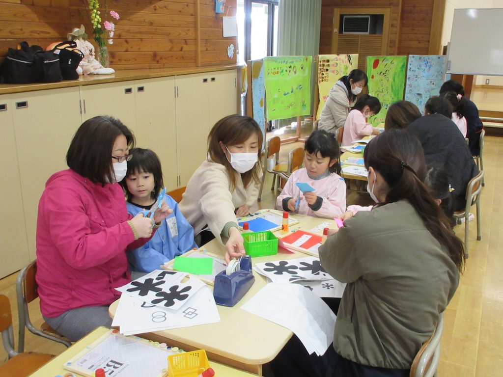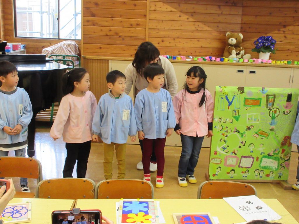 お別れの集い(5歳児) 2019 3/14 ニュース 3月8日(金)に親子でお別れの集いを行いました。茨城県立歴史館の方々をお招きして,紋切り遊びを教えて頂きました。 個性溢れた素敵な作品が出来上がりました! 第2部ではお家の方へ感謝の気持ちを伝えていきました。 幼稚園で楽しかった思い出を一人一人発表していきました。 歌「こころのねっこ」と手紙,手作りの染物のハンカチをプレゼントしました。 それぞれお家の人へ感謝の気持ちを伝えられたようでした。保護者の皆様,園生活を温かく見守ってくださりありがとうございました。 お別れの集いに向けて準備をしていた子どもたちの様子を少しだけ紹介します☆ ニュース URLをコピーしました! ジャガイモ植え(4歳児) 一緒に遊んだよ(2・3歳児) コメント コメントする コメントをキャンセルコメント ※ 名前 ※ メール ※ サイト 次回のコメントで使用するためブラウザーに自分の名前、メールアドレス、サイトを保存する。 上に表示された文字を入力してください。 Δ