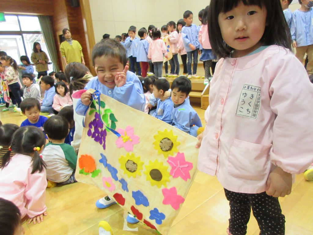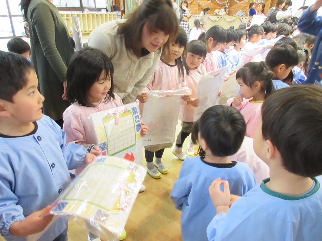 年少・年中組で力を合わせて作ったプレゼントを渡しました。