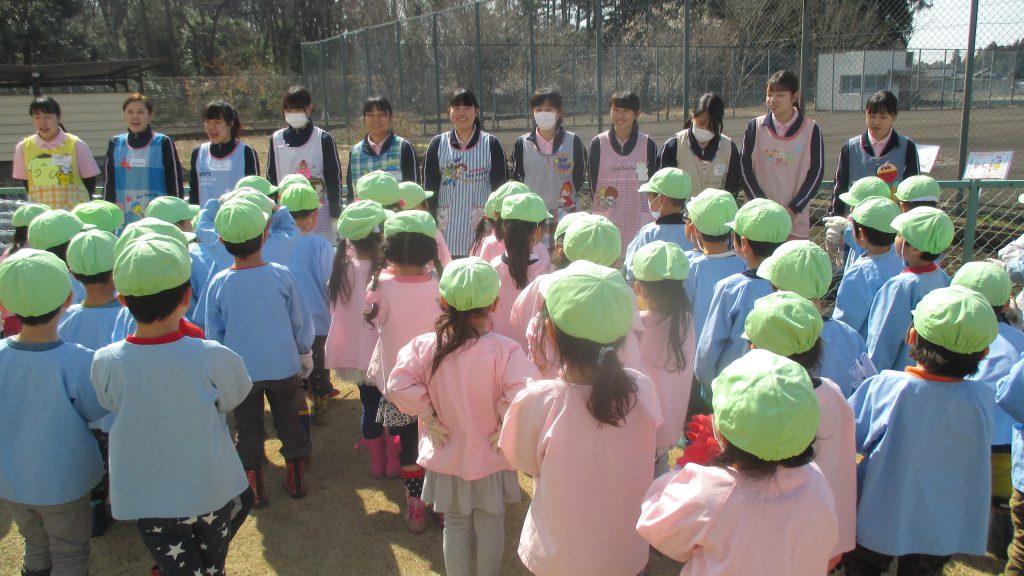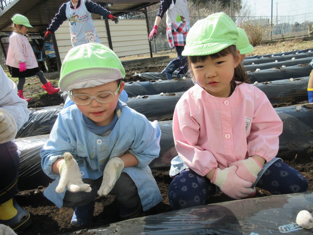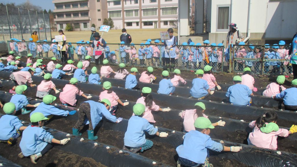ジャガイモ植え(4歳児) 2019 3/14 ニュース 短大の先生よろしくお願いします! 3つずつ、ここからここまでが自分の植える場所だよ! 組体操のようなポーズ!! 石灰をまぶした種芋を穴を掘って入れるよ! ひまわり組・たんぽぽ組の友達も応援に来てくれたよ!美味しいお芋を作るからね☆ 土を優しく被せるよ。 美味しいお芋になってね。 キタアカリ・わせしろ・とうやの三種類を植えました。手作りの看板をつけて、年長さんになってもお世話します。収穫が楽しみですね☆ ニュース URLをコピーしました! 短大散歩(3歳児) お別れの集い(5歳児) コメント コメントする コメントをキャンセルコメント ※ 名前 ※ メール ※ サイト 次回のコメントで使用するためブラウザーに自分の名前、メールアドレス、サイトを保存する。 上に表示された文字を入力してください。 Δ