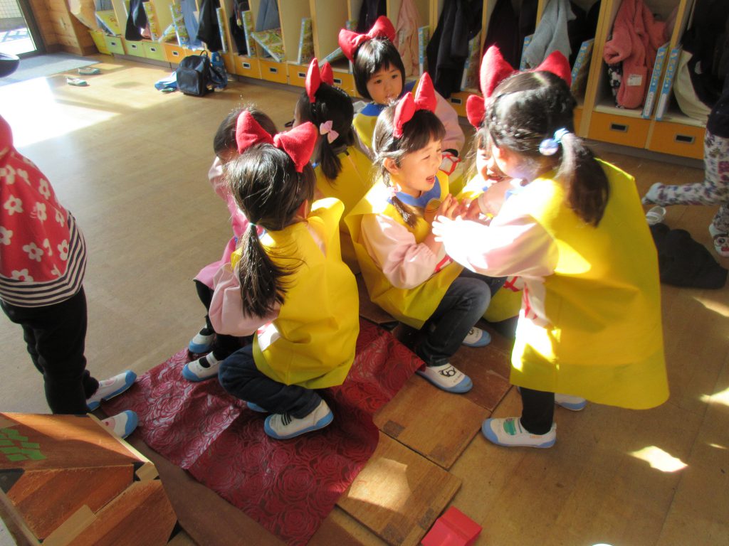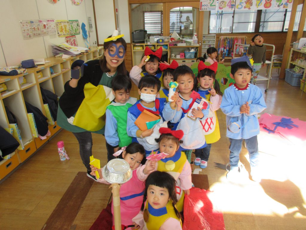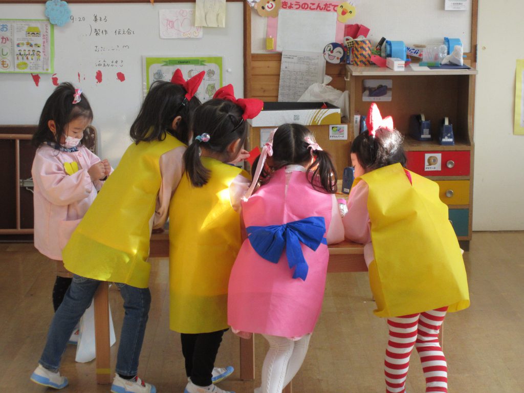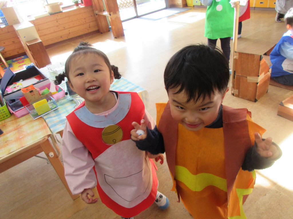 ドラえもんごっこ 2019 3/20 ニュース ドラえもんの話題が飛び交う中,ドラえもんごっこが始まり,うめ組さんが発表会で使った衣装を借りて遊んでいます。 タイムマシンを作っています 何か相談が始まったのかな? みんなで未来に出発!? みんなで遊ぶと楽しいね!! ニュース URLをコピーしました! 交通安全教室 ちゅうりっぷ組と給食を食べました コメント コメントする コメントをキャンセルコメント ※ 名前 ※ メール ※ サイト 次回のコメントで使用するためブラウザーに自分の名前、メールアドレス、サイトを保存する。 上に表示された文字を入力してください。 Δ