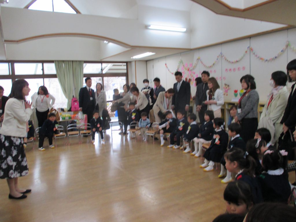 年長・年中組さんの歓迎の話や園歌を興味深げによく聞いていました。