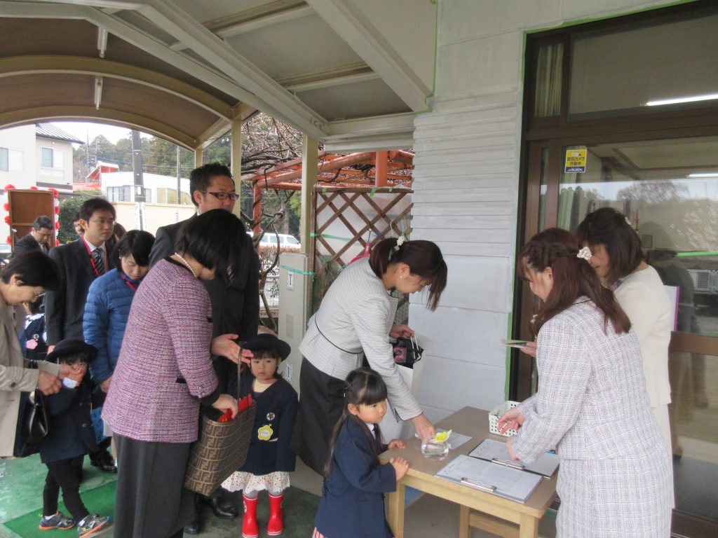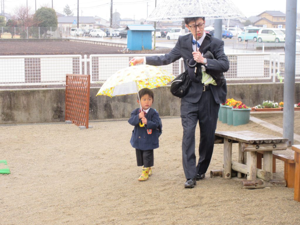 花冷えの天気となってしまいましたが,新しい制服に身をつつみ、お父さんやお母さんと手を繋いで幼稚園の門を入ってきました。