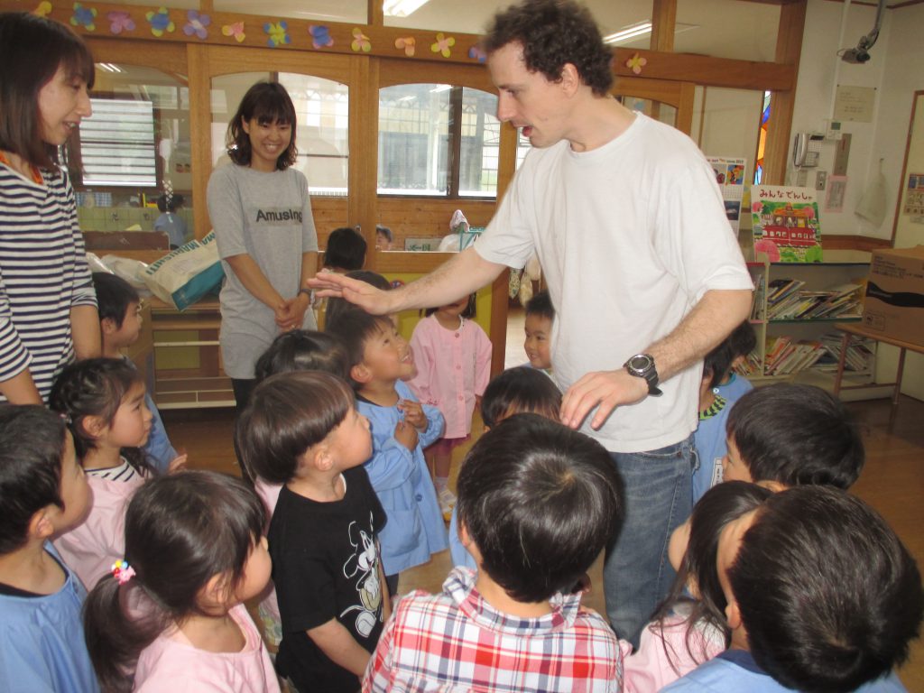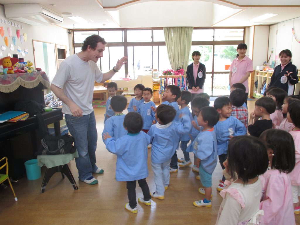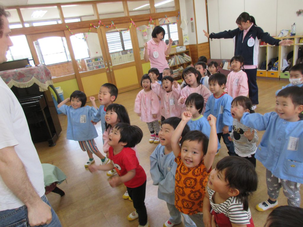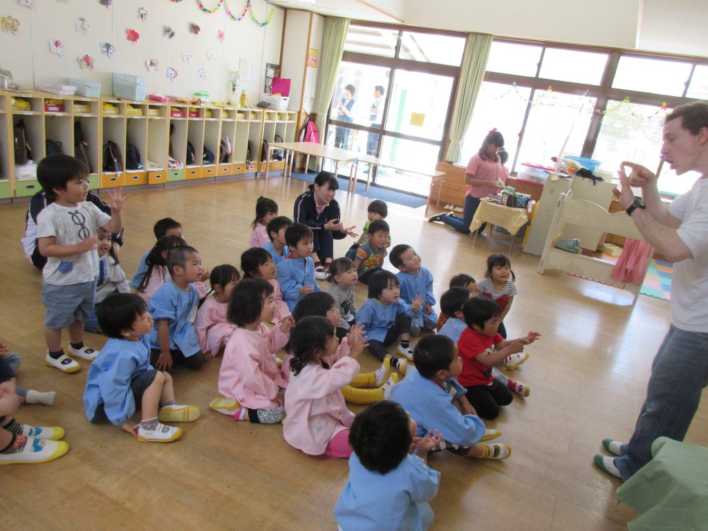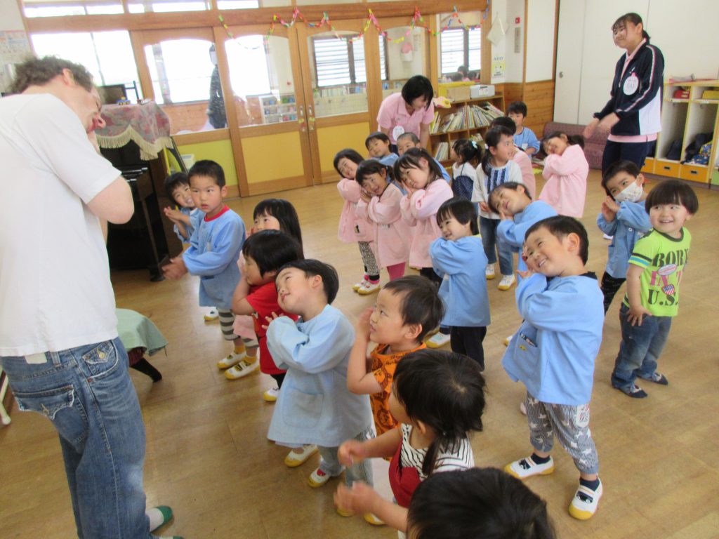 初めての英語(3歳児) 2019 5/24 ニュース 5月17日(金)に初めての英語を行いました。 ジャクソン先生が来てくれたことに大喜び! 英語が書いてあるカードに興味津々です。 一緒に歌を歌ったり・・・ ダンスを踊ったり・・・ 眠ったり(sleep)・・・ 楽しく活動をしていました♪ 今日の帰りのひと時に,「明日は英語の日だよ!」と伝えると,「ジャクソン先生だよね!」「またおどるのかな?」ととても楽しみにしている様子が見られていた子どもたちです! ニュース URLをコピーしました! シャボン玉(4歳児) 欠席状況(感染症)5月24日(金) コメント コメントする コメントをキャンセルコメント ※ 名前 ※ メール ※ サイト 次回のコメントで使用するためブラウザーに自分の名前、メールアドレス、サイトを保存する。 上に表示された文字を入力してください。 Δ