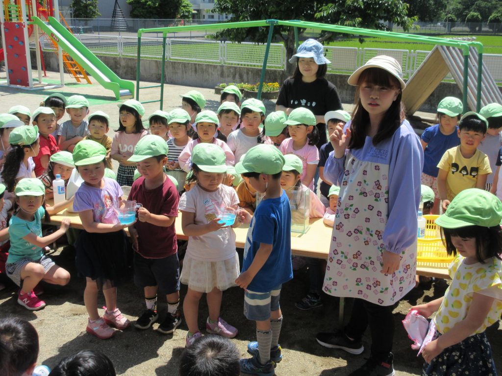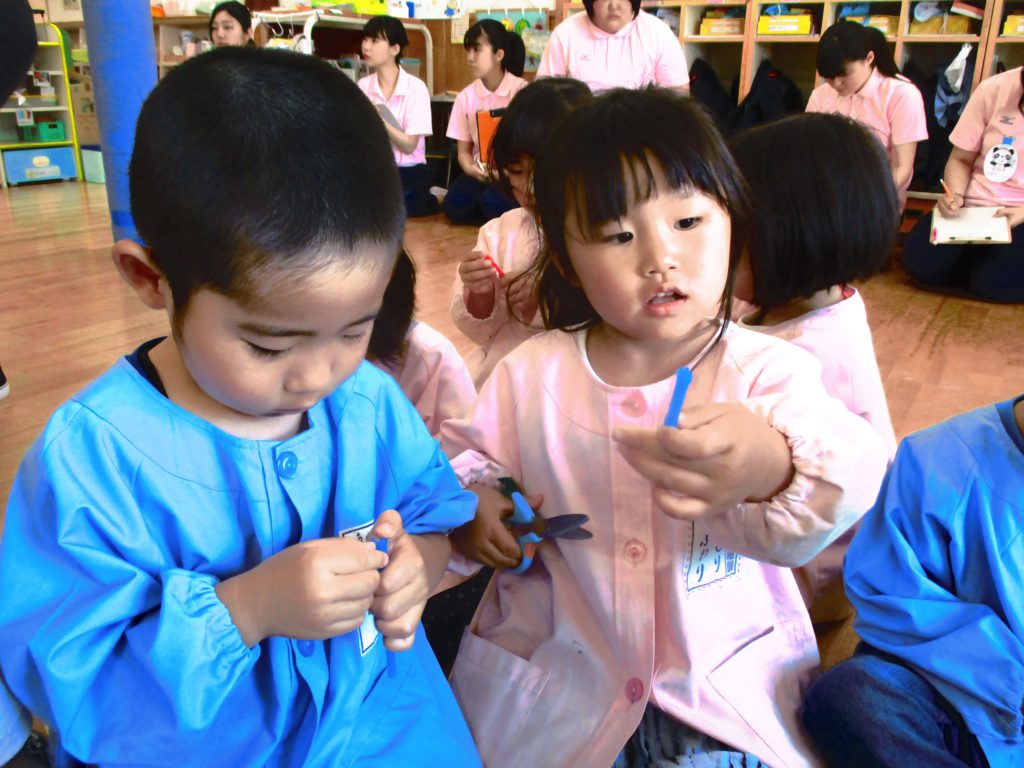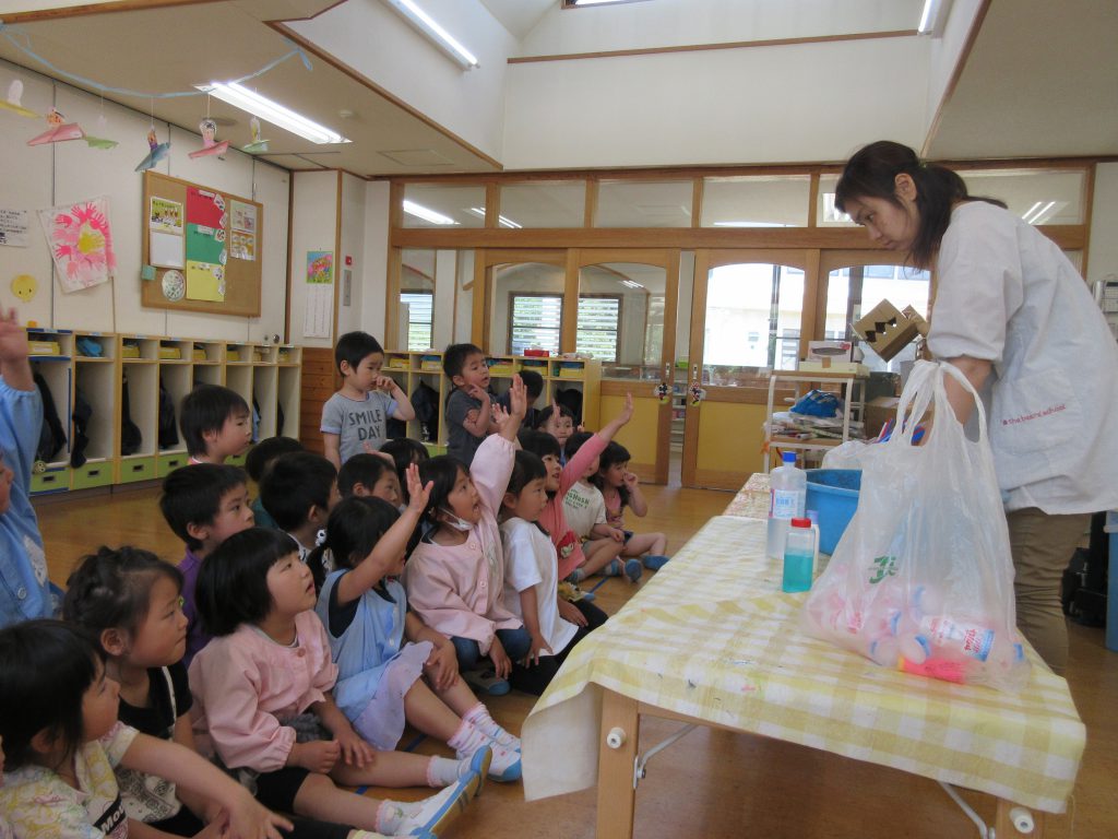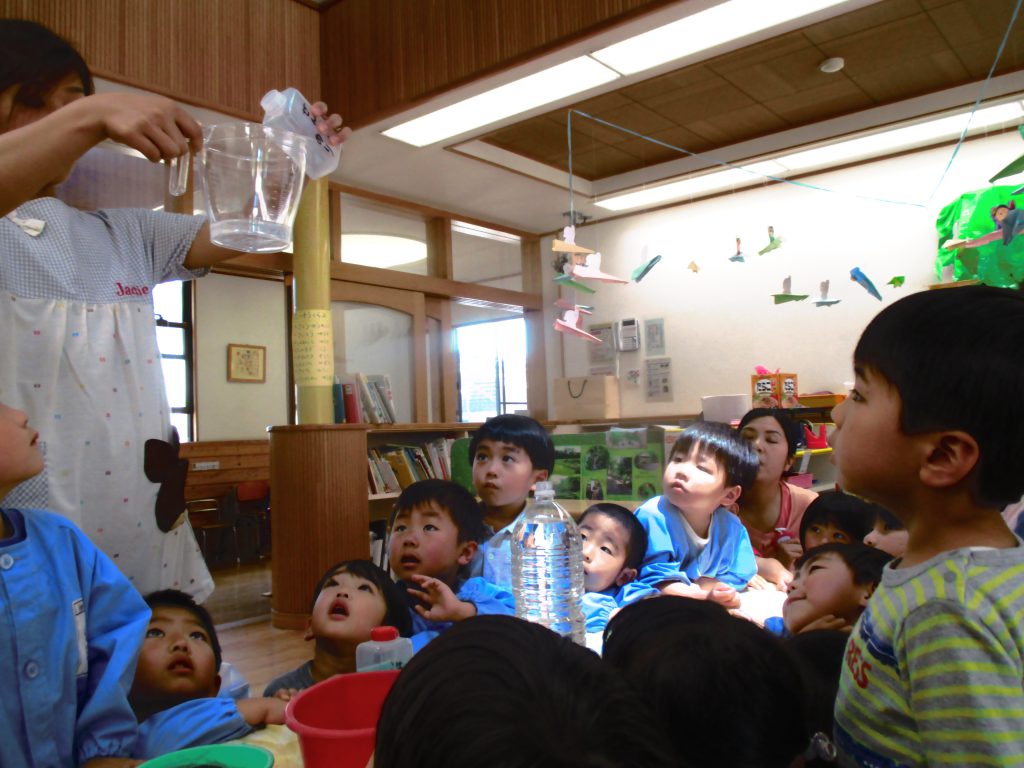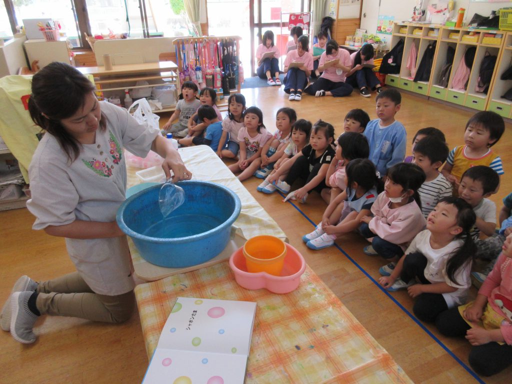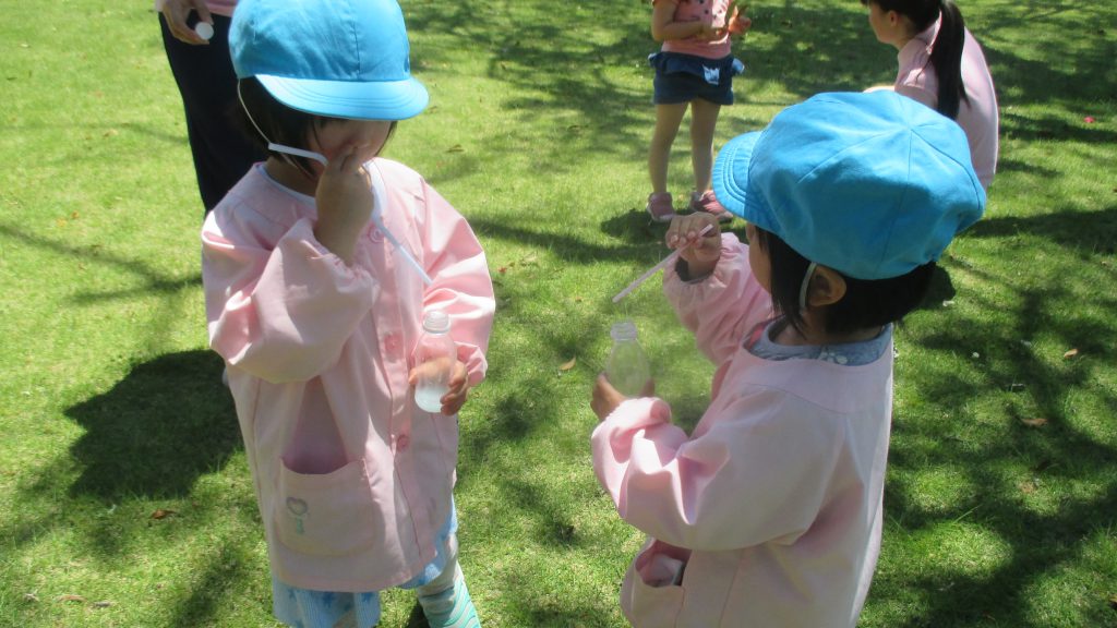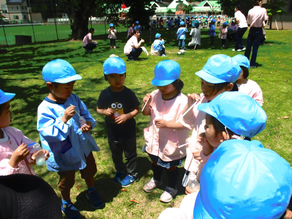 シャボン玉(4歳児) 2019 5/24 ニュース 5歳児クラスの友達がシャボン玉の液を作っていました。どうやって作っているのかな? クラスに戻り,自分たちでも作ってみることにしました。 「洗濯のりを使っていたね。」「水も入れるよ。」 上手くできるかな〜?? ストローを使ってやってみよう。「タコさんみたいに切ってみよう」 短大の芝生で挑戦してみよう! そーっと吹いて・・・ 「できた?」教えあっているのかな? みんなでできるか・・・「せ〜の!!」 良い天気の中,シャボン玉遊びを楽しみました。 皆で作ったシャボン液を使って挑戦すると,上手くいったり・いかなかったり・・・最初からは上手くいくことばかりではないことにも気づき,学びの多い時間になったようでした。 ニュース URLをコピーしました! 今日の給食 5月23日(木) 初めての英語(3歳児) コメント コメントする コメントをキャンセルコメント ※ 名前 ※ メール ※ サイト 次回のコメントで使用するためブラウザーに自分の名前、メールアドレス、サイトを保存する。 上に表示された文字を入力してください。 Δ