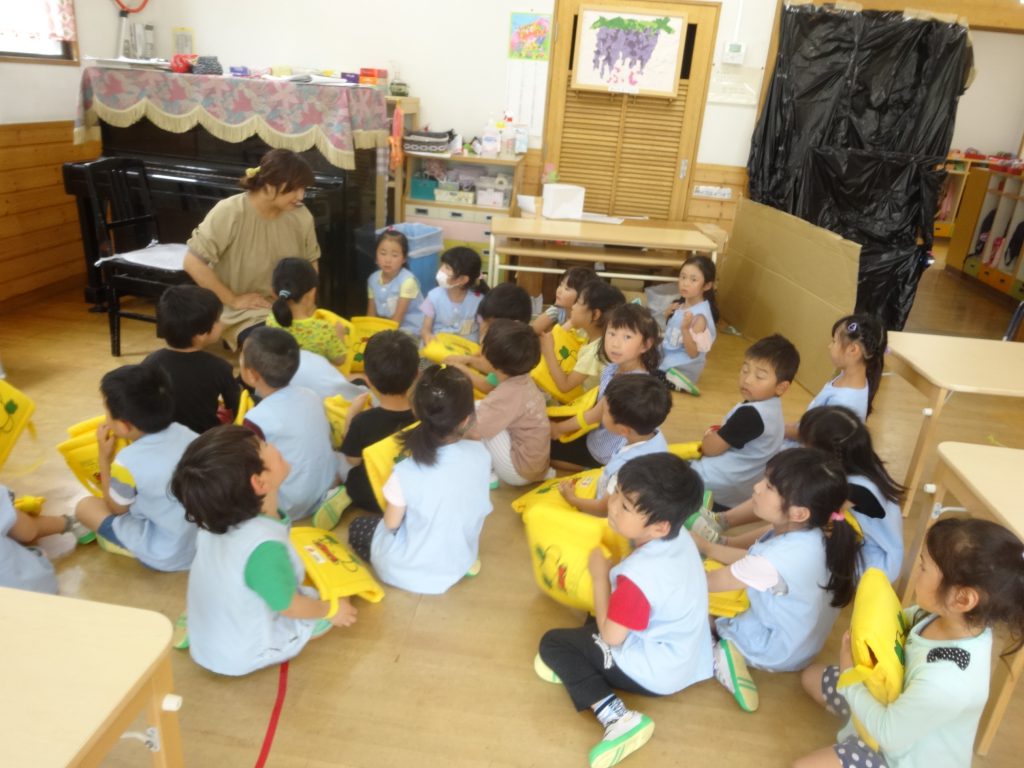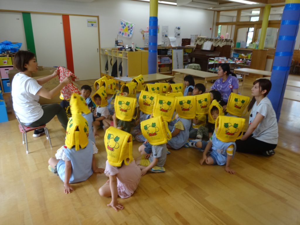 5歳児は,どうやって頭を守れば良いかを話しあっていました。
