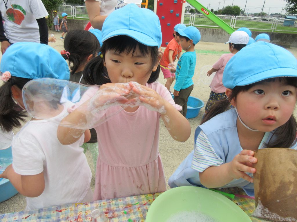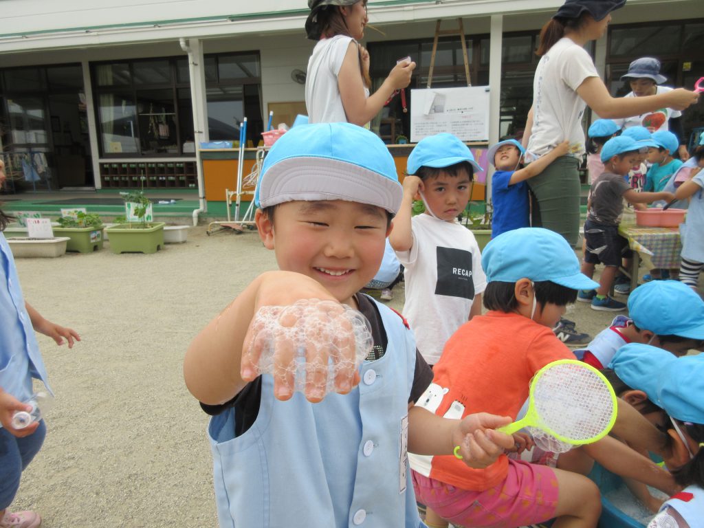 シャボン玉 Part2 2019 5/28 ニュース 今日は よく飛ぶ シャボン液を作ろう!! 「水が多い方がいいよ」前回の経験から考えたことを伝え合い、液を作りました。 年長さんにも道具を借り,遊び始めました! 使う道具によって色々なシャボン玉ができました。新たな発見がありましたね。 ニュース URLをコピーしました! 避難訓練(地震)5月28日(火) 今日の給食 5月28日(火) コメント コメントする コメントをキャンセルコメント ※ 名前 ※ メール ※ サイト 次回のコメントで使用するためブラウザーに自分の名前、メールアドレス、サイトを保存する。 上に表示された文字を入力してください。 Δ
