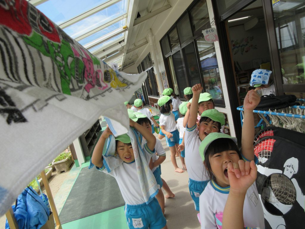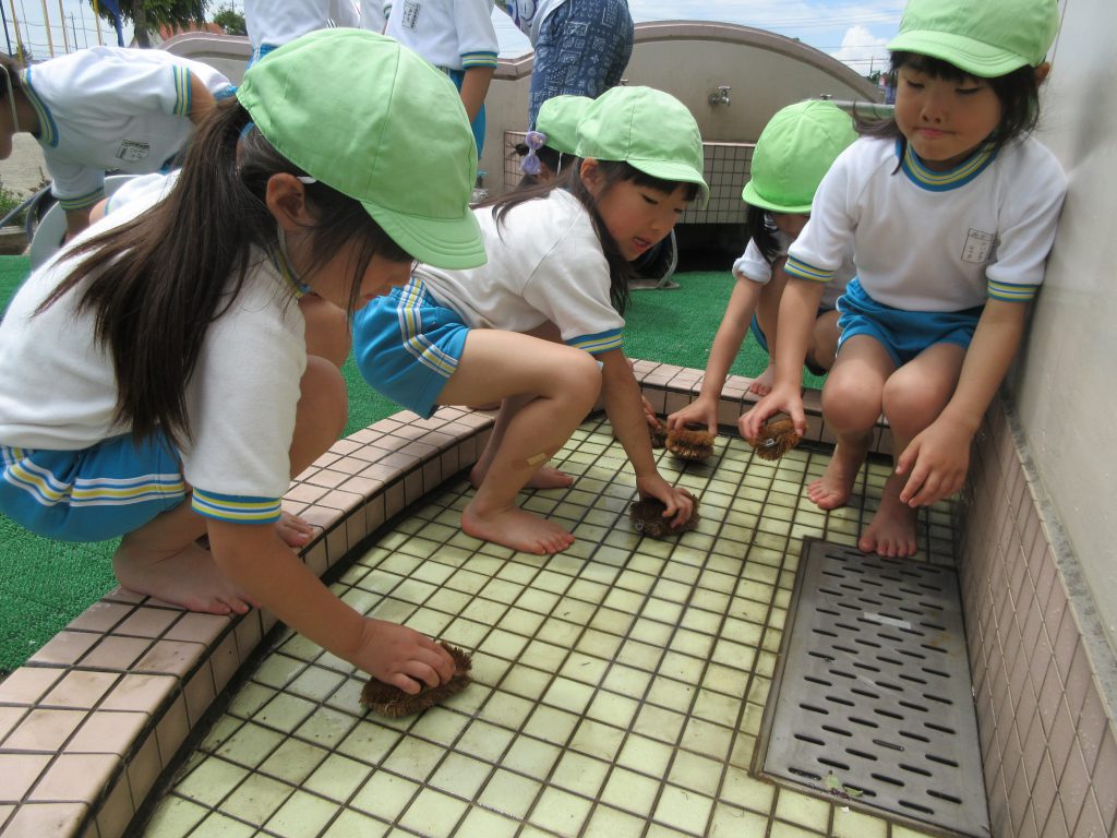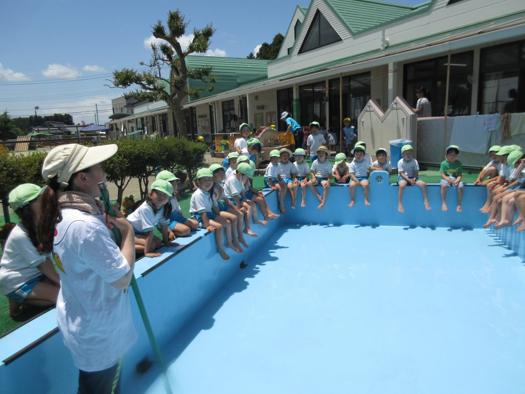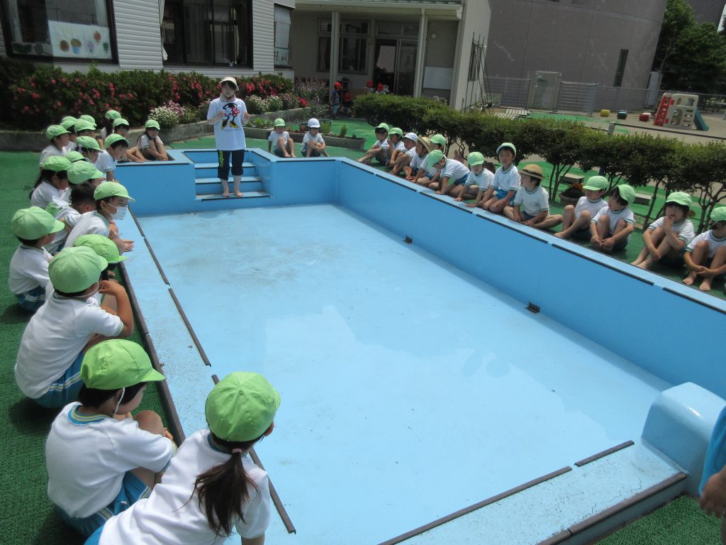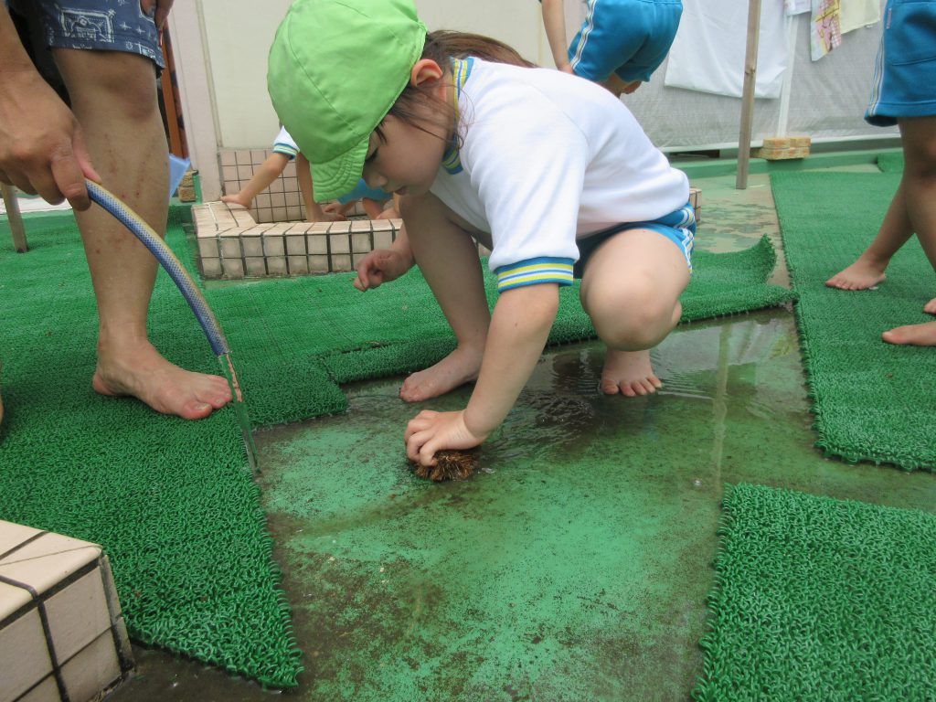 本日はさくら組・ふじ組の子どもたちがプール清掃を行いました!